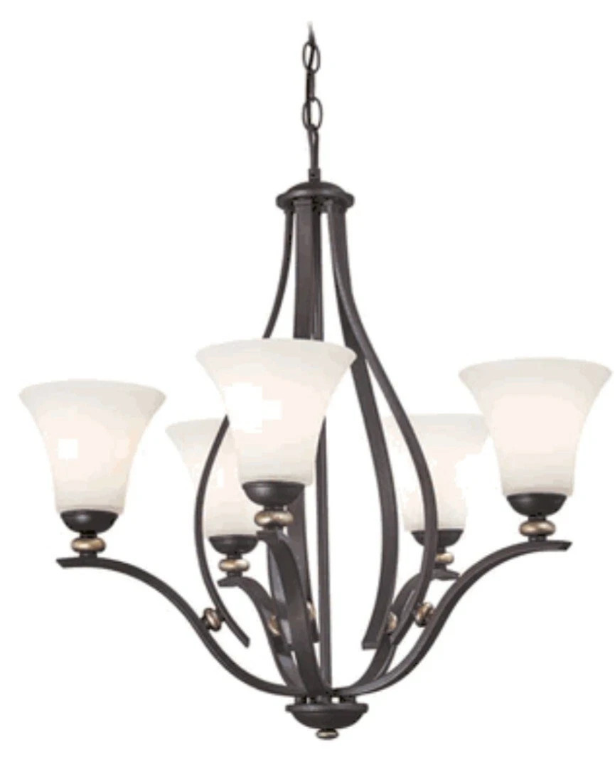 This Shadowglen Collection chandelier by Minka Lavery will update your home with its transitional and eye-catching design. Featuring a Castle Bronze finish and Etched White glass shades, this 5 light fixture will accommodate a variety of decor styles. With its easy installation and low upkeep requirements, this chandelier will not disappoint.
