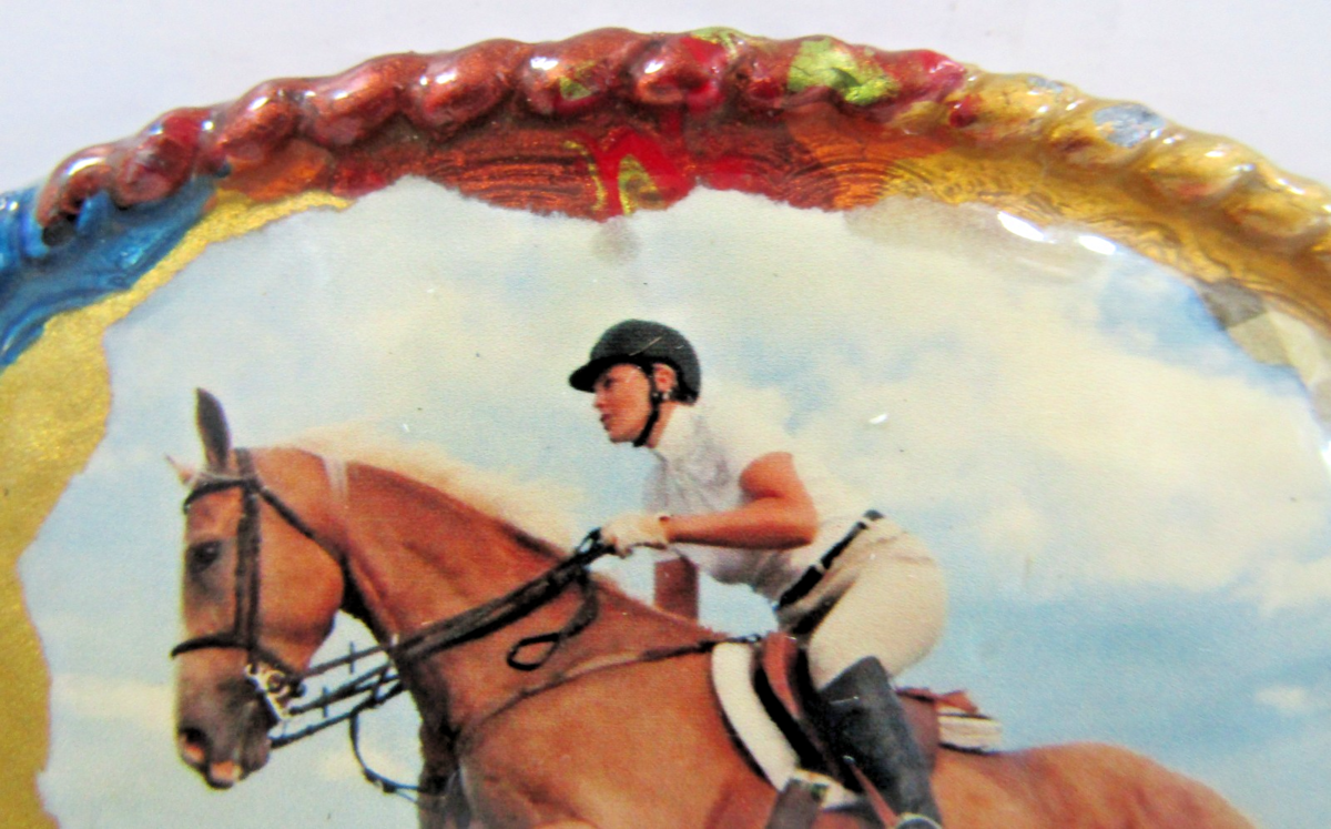 Equestrian Hand Painted Signed Horse Jumping Steeplechase Twisted Rope Border