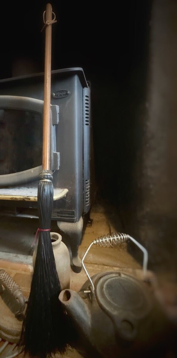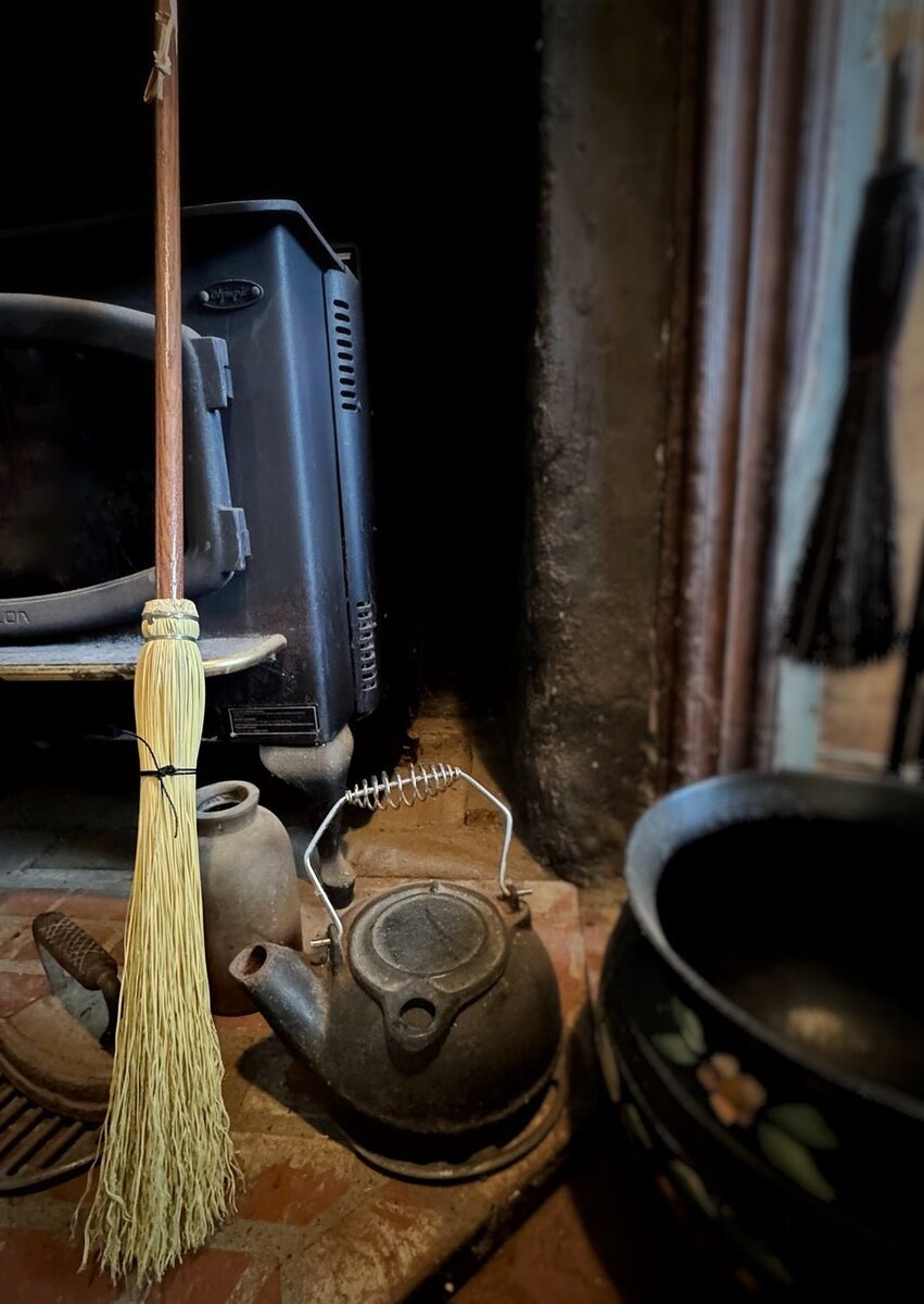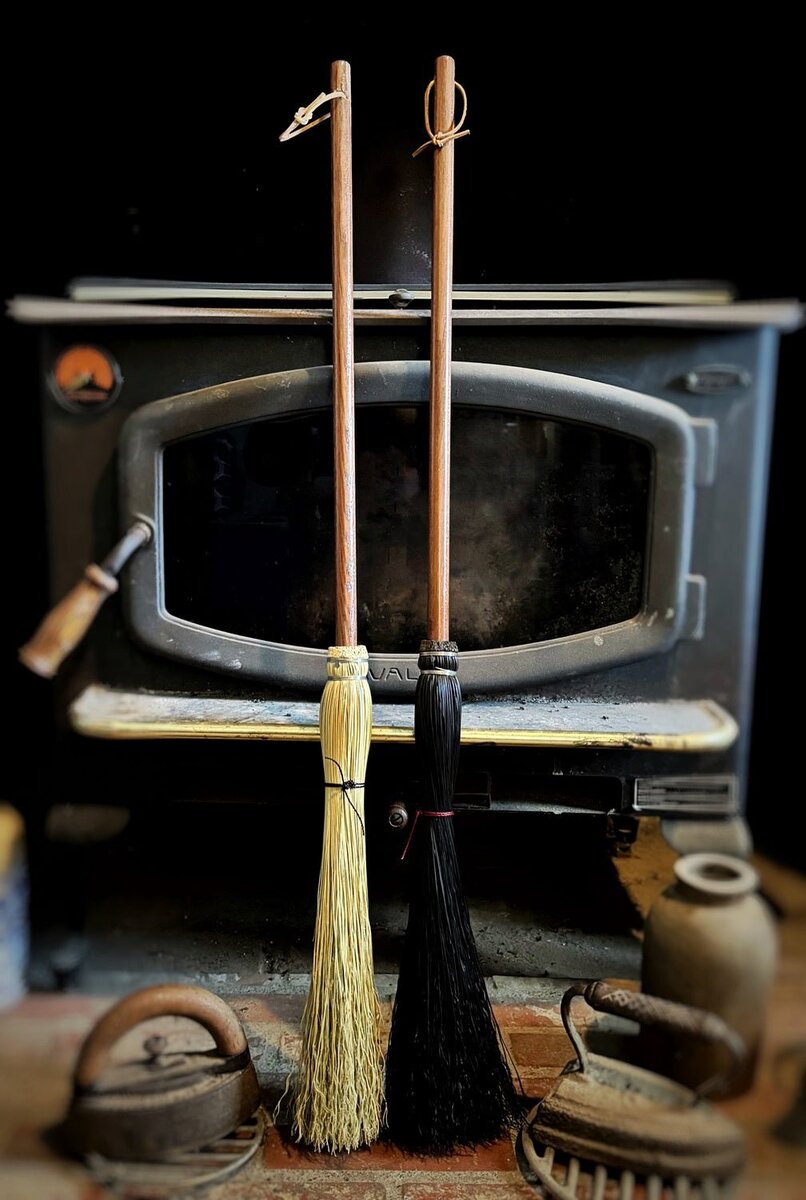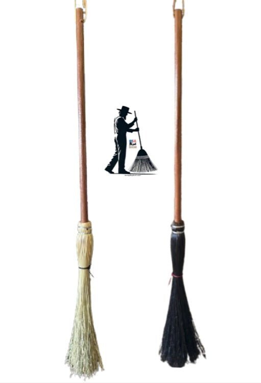 LONG HANDLE FIREPLACE BROOM - Black & Natural Corn Straw Amish Hand Brush