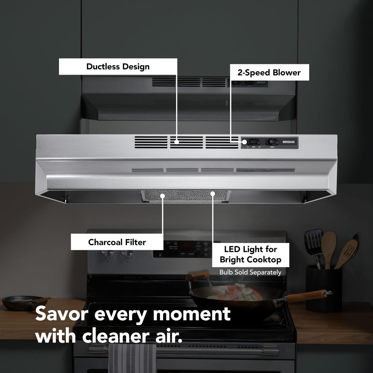 Broan-NuTone 4124SF 24-Inch Fingerprint Resistant Ductless Under-Cabinet Range H