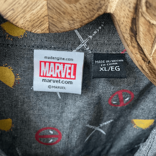 NWT Hot Topic Marvel Deadpool Taco Party Woven Short Sleeve Button-Up Shirt XL