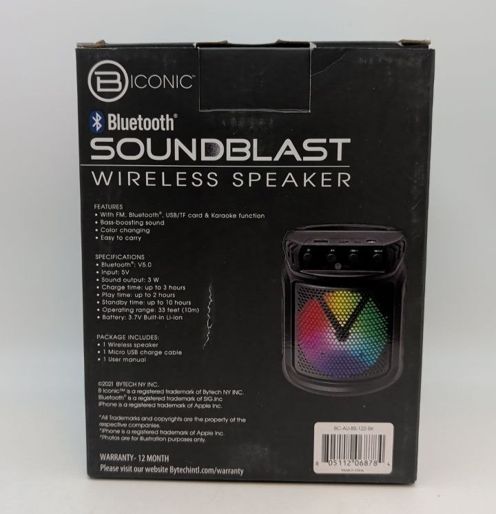 Item includes: Please note: This item includes 1x Biconic Bluetooth Portable Speaker, and 1x USB Cable Only ? As Pictured. No other accessories are included
