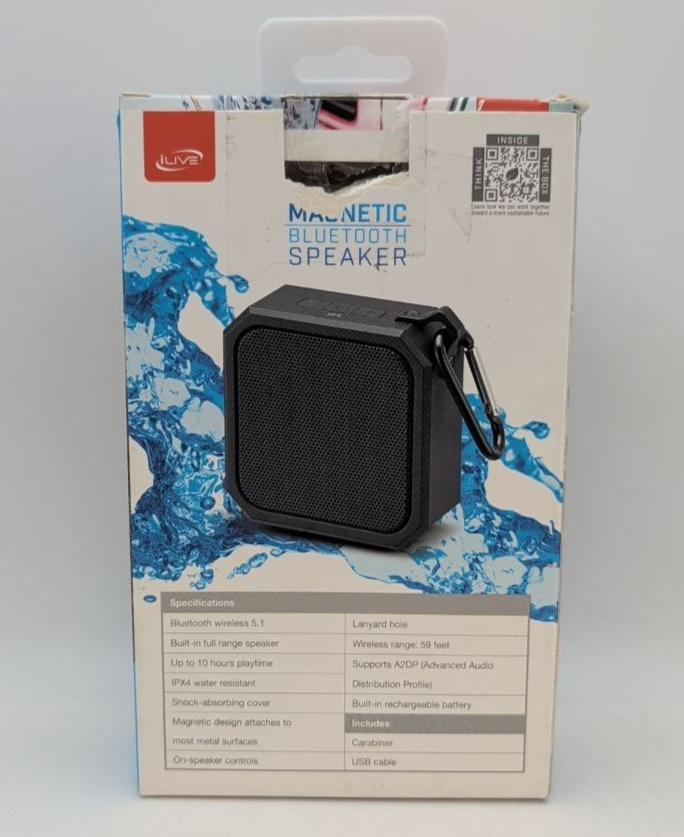 Item includes: Please note: This item includes 1x iLive Magnetic Bluetooth Portable Speaker with Carabiner, and 1x USB Cable Only ? As Pictured. No other accessories are included