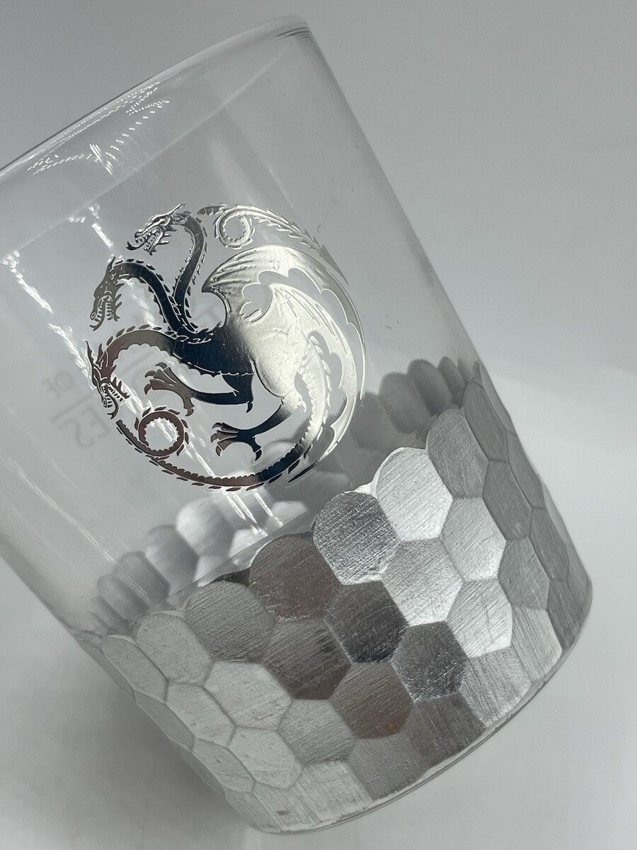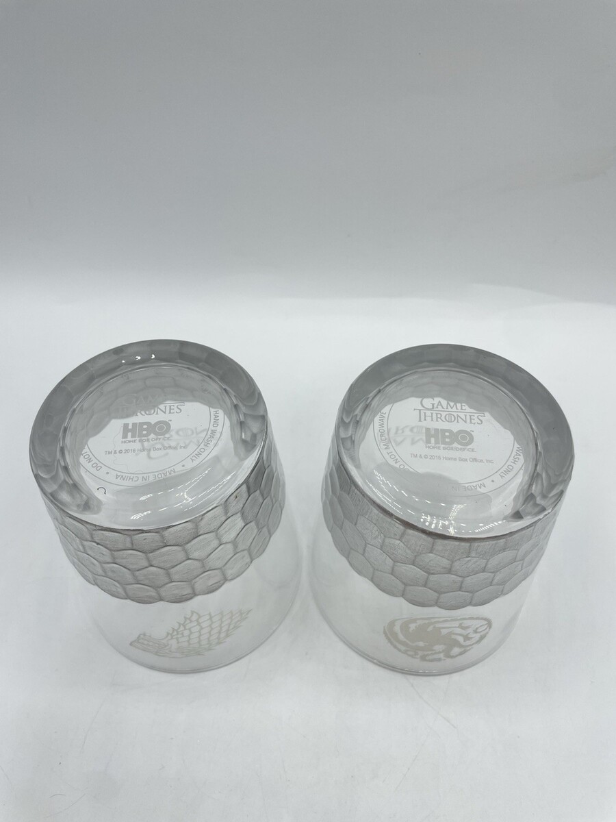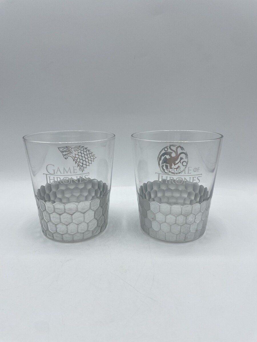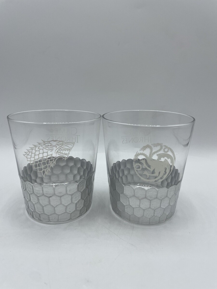 2 Game of Thrones Drinking Glasses Stark and Targaryen dragon scales HBO Bs304