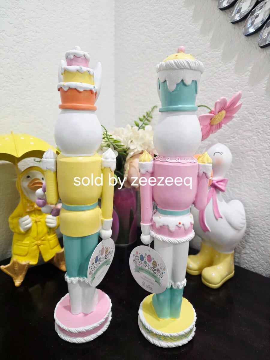 Up for sale we have this adorable Easter soldier nutcrackers for your Easter decor. These are made of resin and are gorgeous!! New set of 2.
