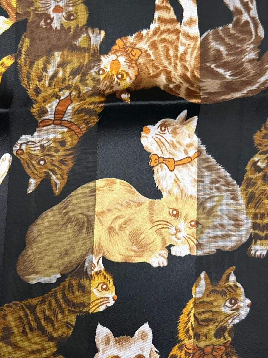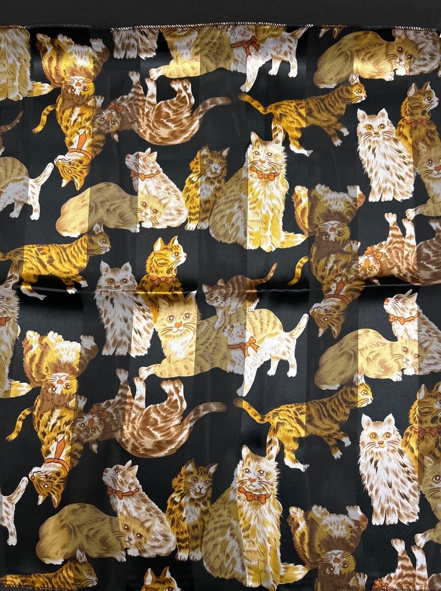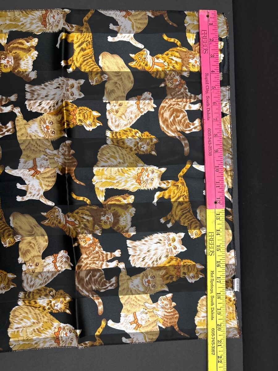 Cat Print Black & Yellow Polyester Scarf 22x22 Inches Made In Korea