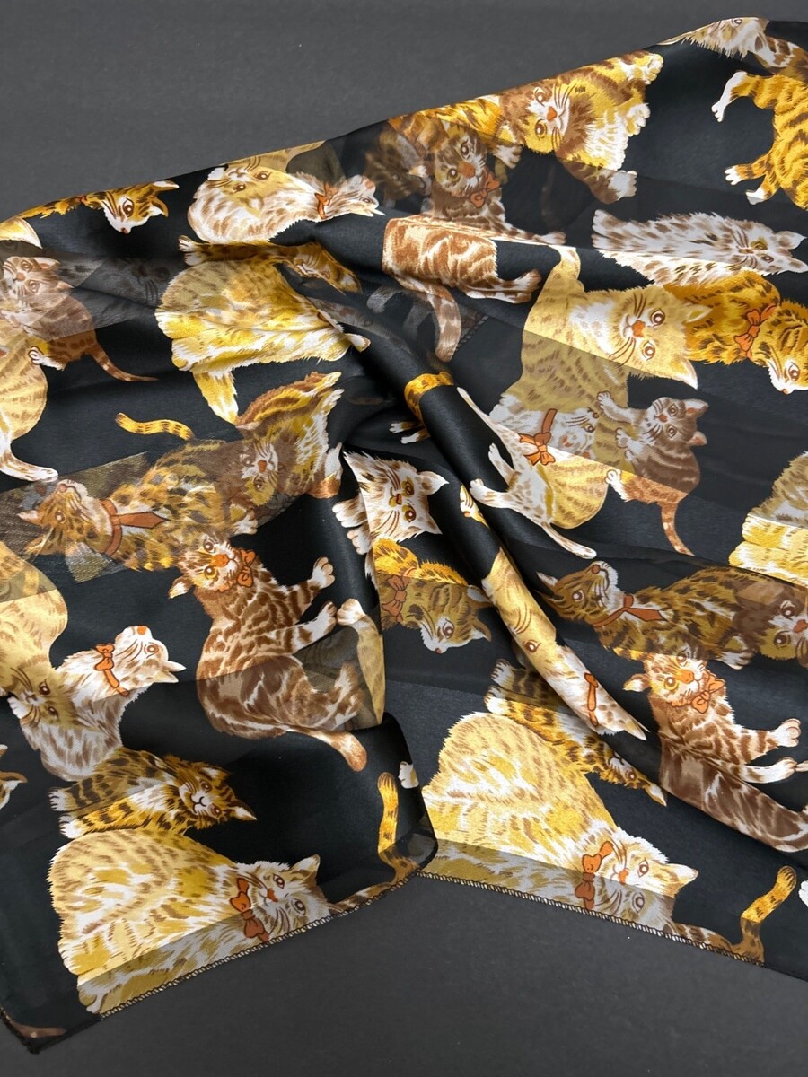 Cat Print Black & Yellow Polyester Scarf and 48 similar items