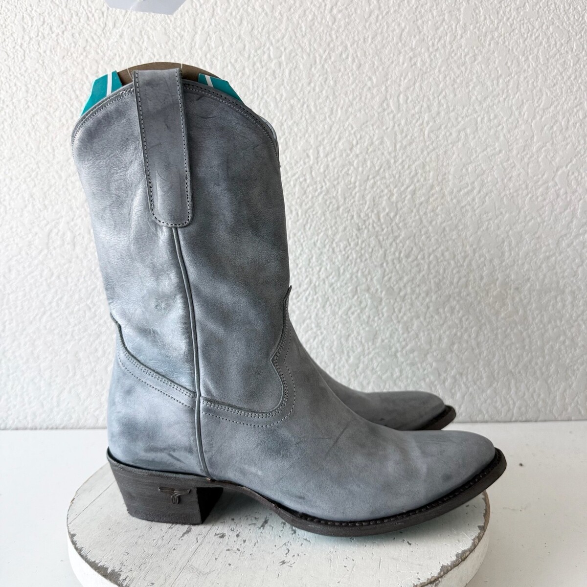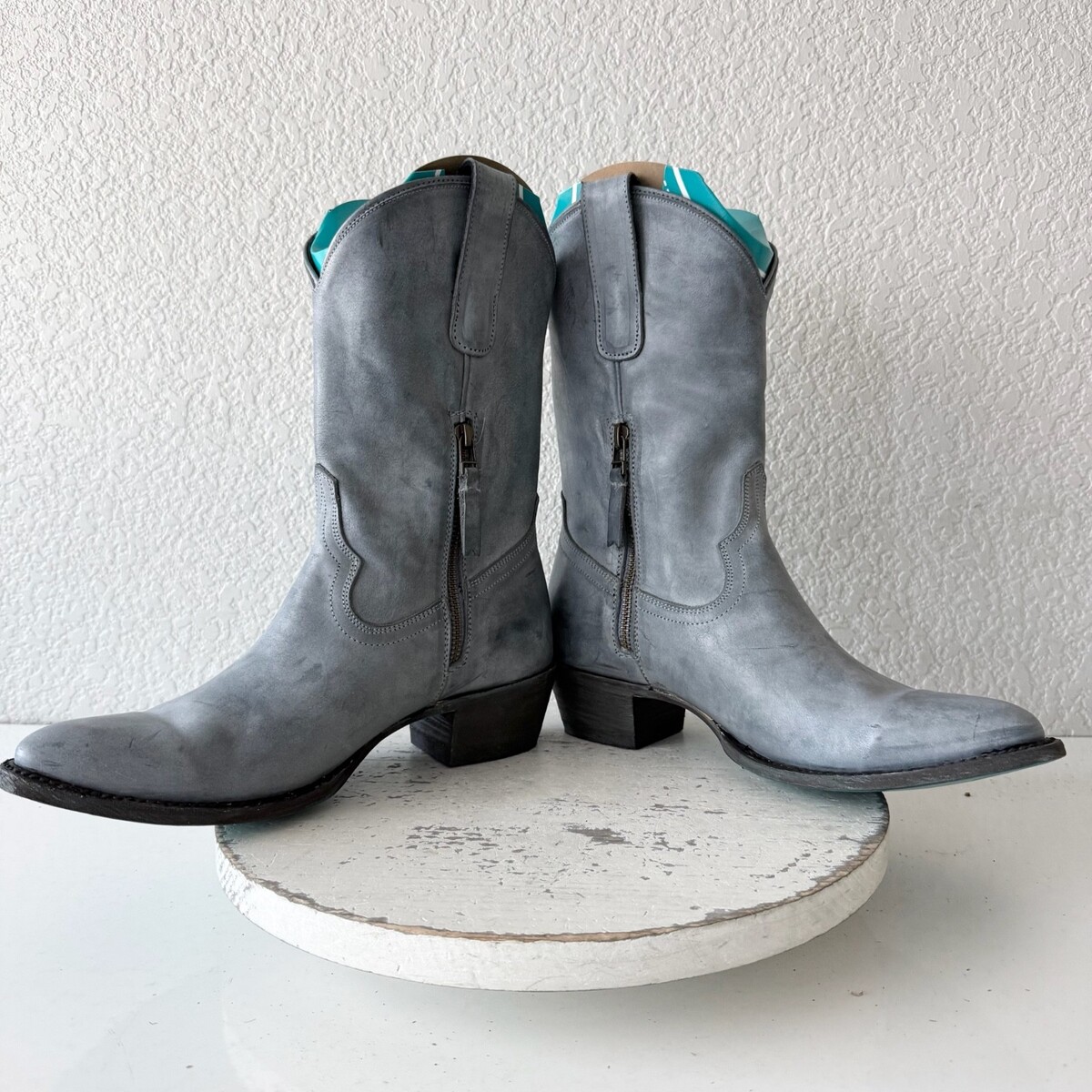Lane PLAIN JANE Cowboy Midi Boots Washed Denim Blue Western Cowgirl Short Size 9