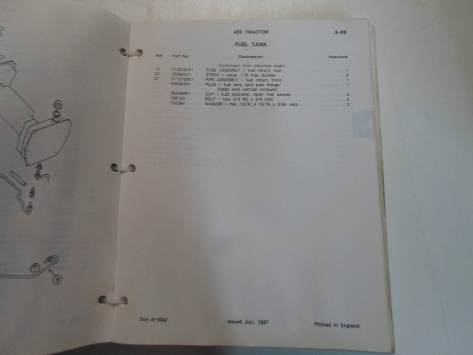 Catalogue De Pieces De Tracteur CASE 485 Manuel Feuille Lache TACHEE OEM D'Usine