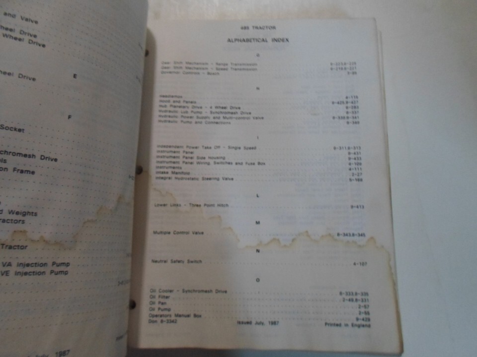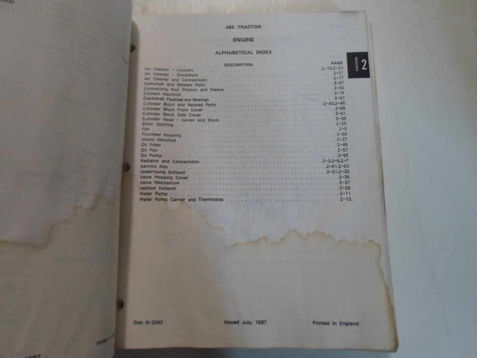 Catalogue De Pièces De Tracteur CASE 485 Manuel Feuille Lâche TACHÉE OEM D'Usine