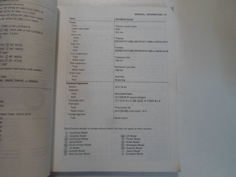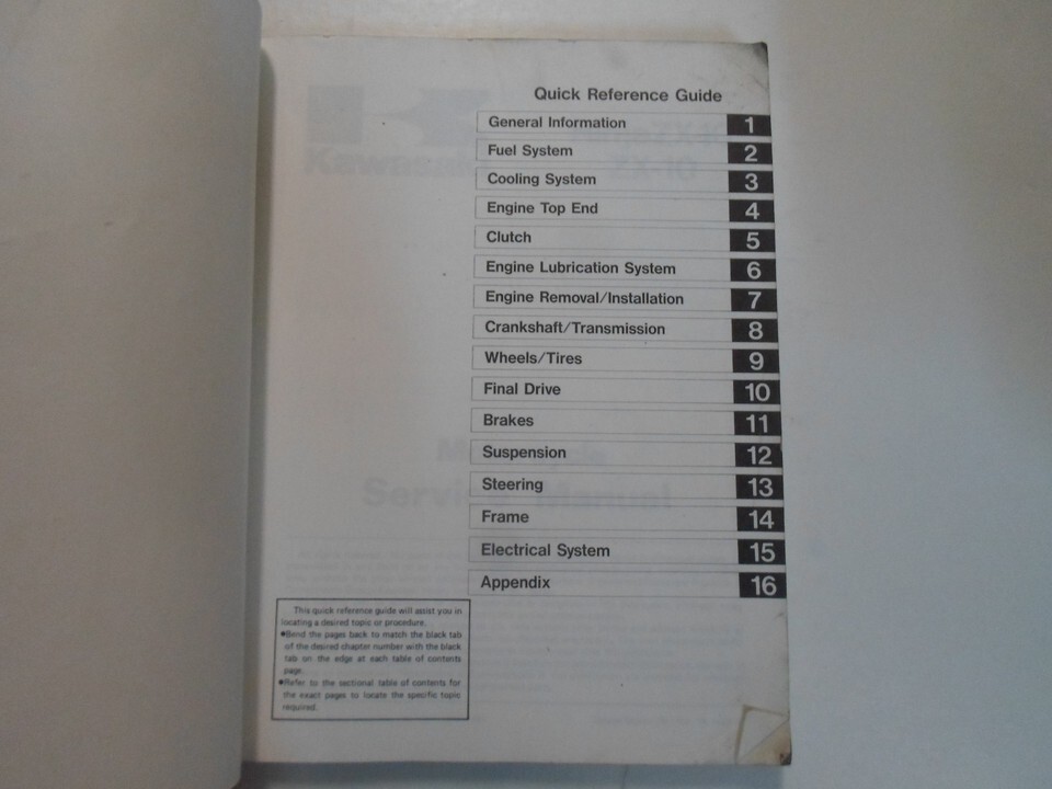 1988 1989 1990 KAWASAKI NINJAZX-10 ZX-10 MANUEL D'ENTRETIEN DE MOTO
