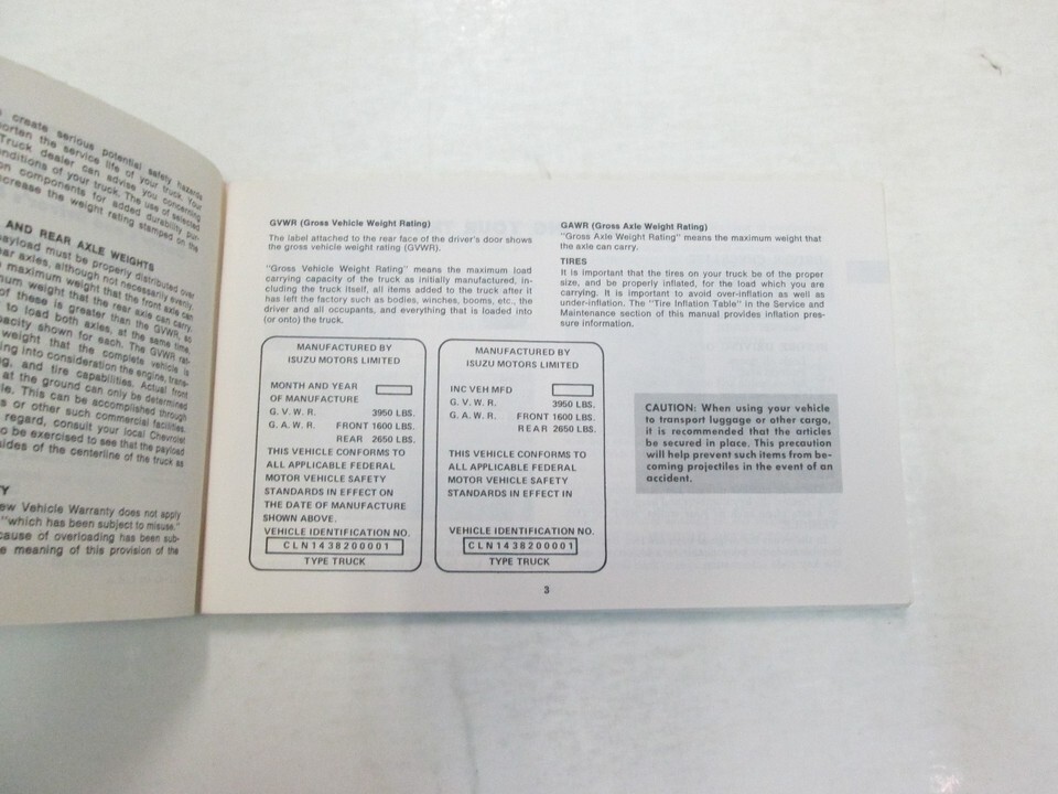 1974 CHEVROLET Luv Series 3 Owners Drivers Manual Tanal