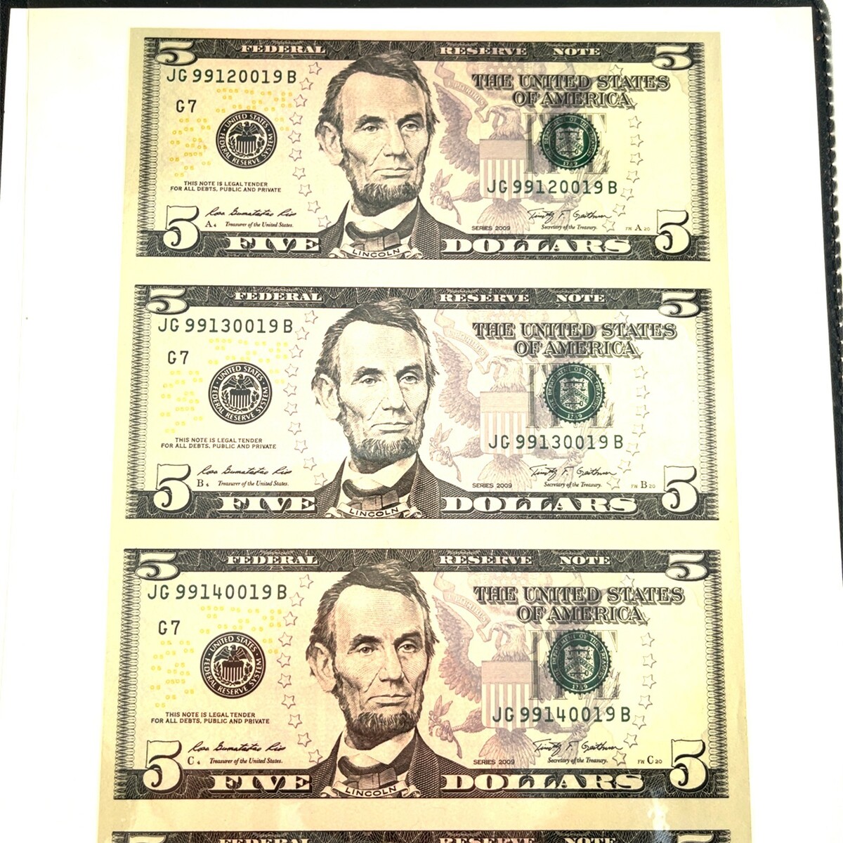 Series of 2009 Uncut Sheet of 4 Abraham Lincoln Bill sheet