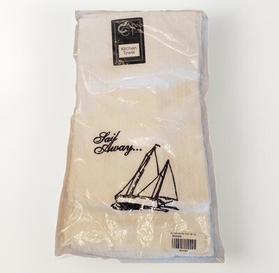 Kitchen Towel Set of 4 Waffle White Cotton Embroidered Nautical Sail Boat Gift