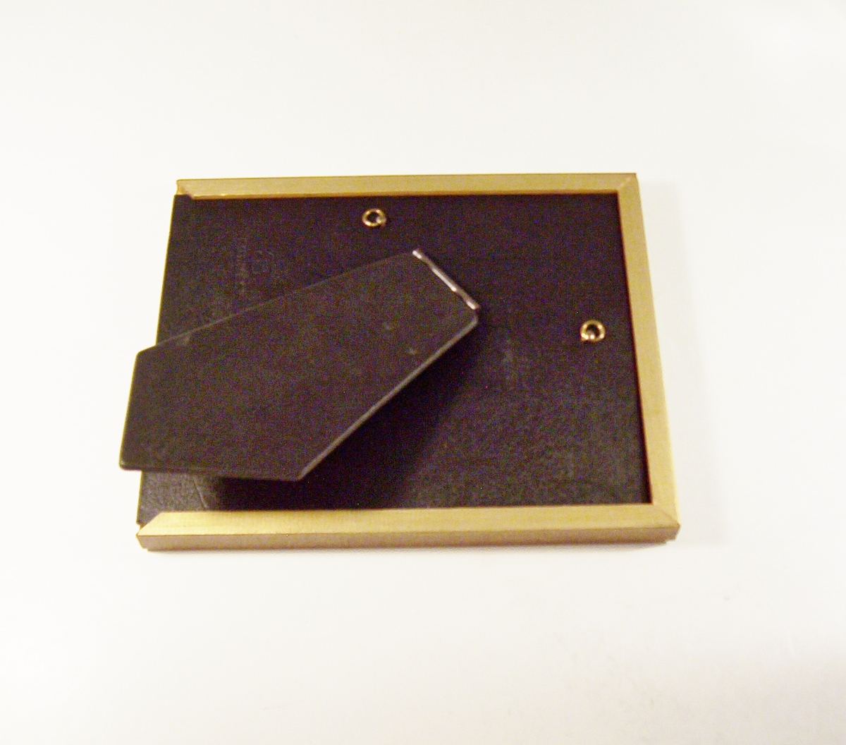 This vintage 1970s wood photo frame is made by Burnes. The rectangular shape with its delicately embossed oval metal mat adds a touch of elegance to any room. The rear-loading design makes photo insertion easy, while the clear glass front showcases your cherished photo. This picture frame can be used in a portrait or landscape orientation.