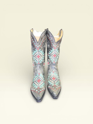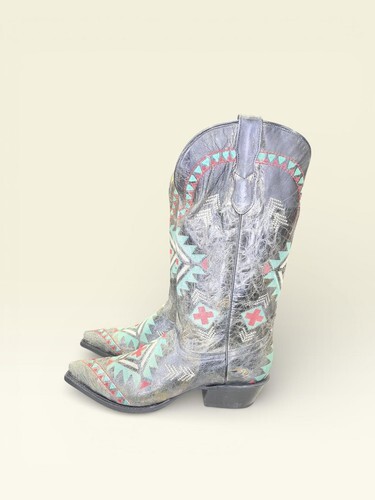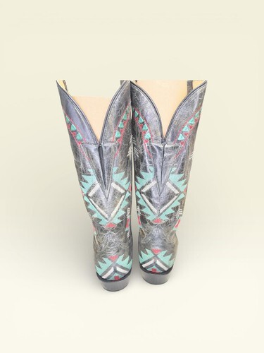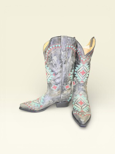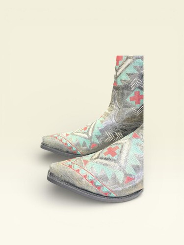 Snip toe/Southwest embroidery/Waxy leather/Pull on tabs/Handcrafted |