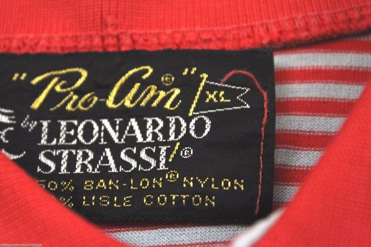 VTG 1970s Leonardo Strassi Red Gray Stripe Polo Shirt Skater Indie Mens XL ProAM