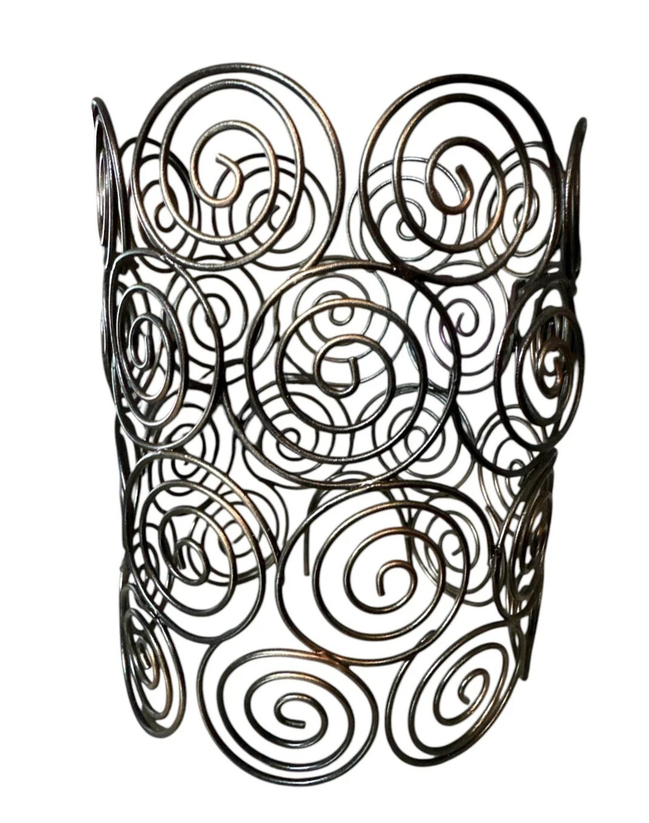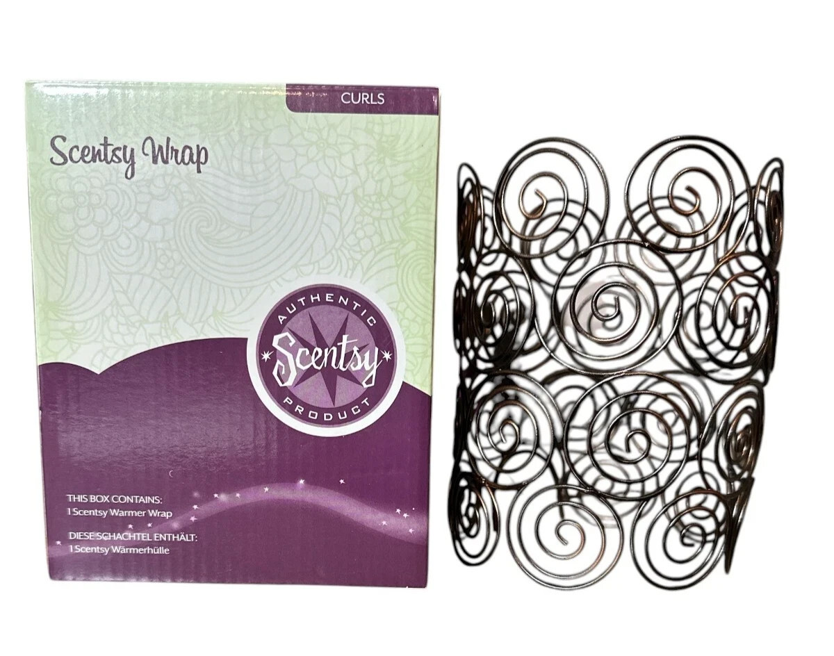 The Scentsy Wrap for Warmer in the "CURLS" design is a decorative and modern addition to any room. Made of metal with a painted brown finish, this full-size cylindrical wrap features a unique curls pattern that adds a touch of style to your Scentsy warmer. This retired piece is suitable for any room and is designed to be used with a Scentsy warmer, bringing a cozy and inviting atmosphere to your home.