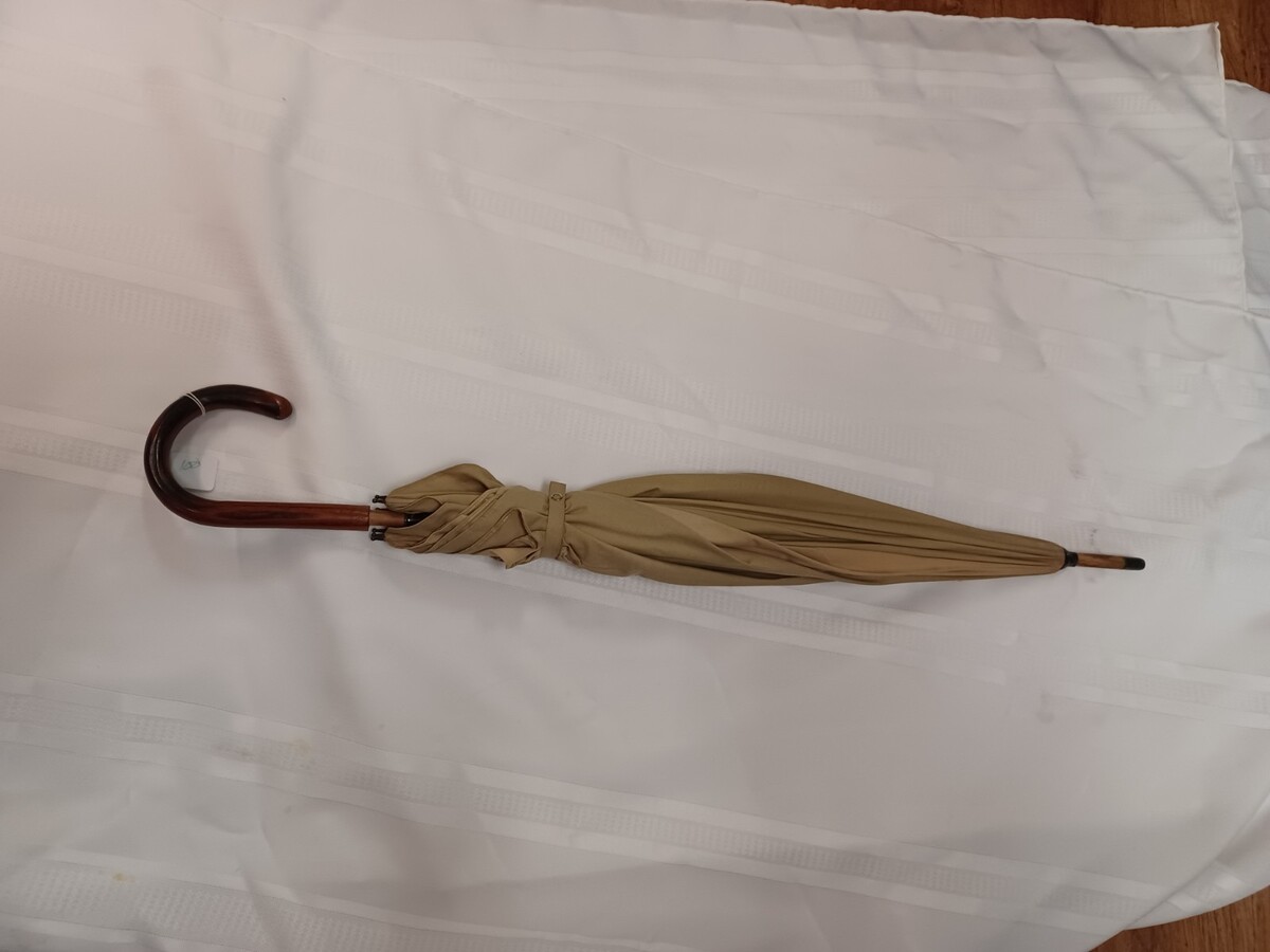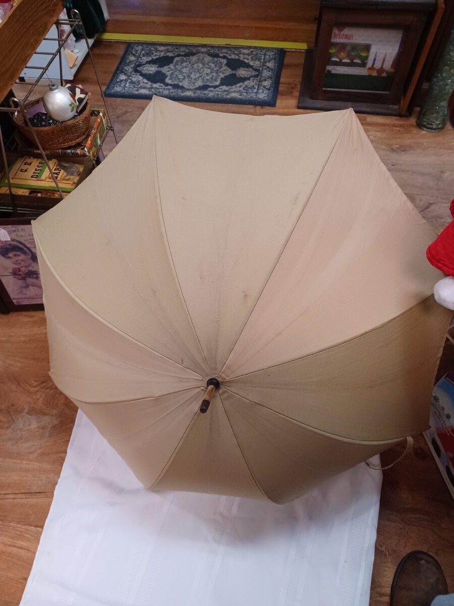 Vtg Antique Parasol Fabric Umbrella Wood Handle 40" Diameter 34" Length