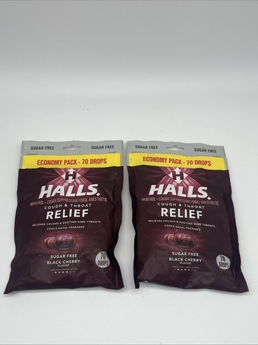 2PK-Halls Relief Sugar Free Black Cherry Flavor Cough Drops, Economy Pack 70ct.