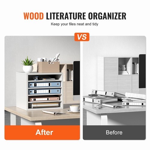 Maximize Your Space: Say goodbye to cluttered desktops with VEVOR 13.9''x12''x13'' wood literature organizer. It has 5 compartments in total. You'll have ample space to store and organize books, documents, magazines, papers, and other materials. Keep your workspace neat and tidy with ease.