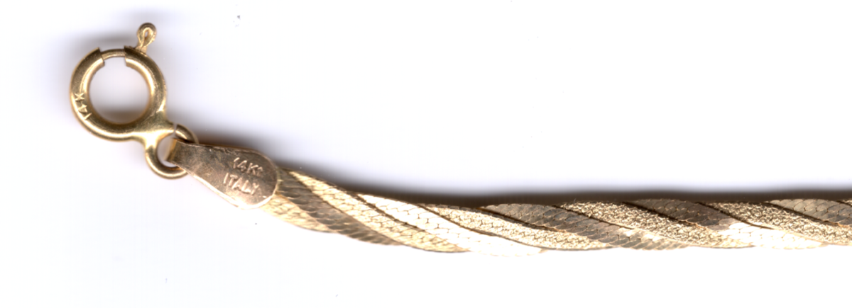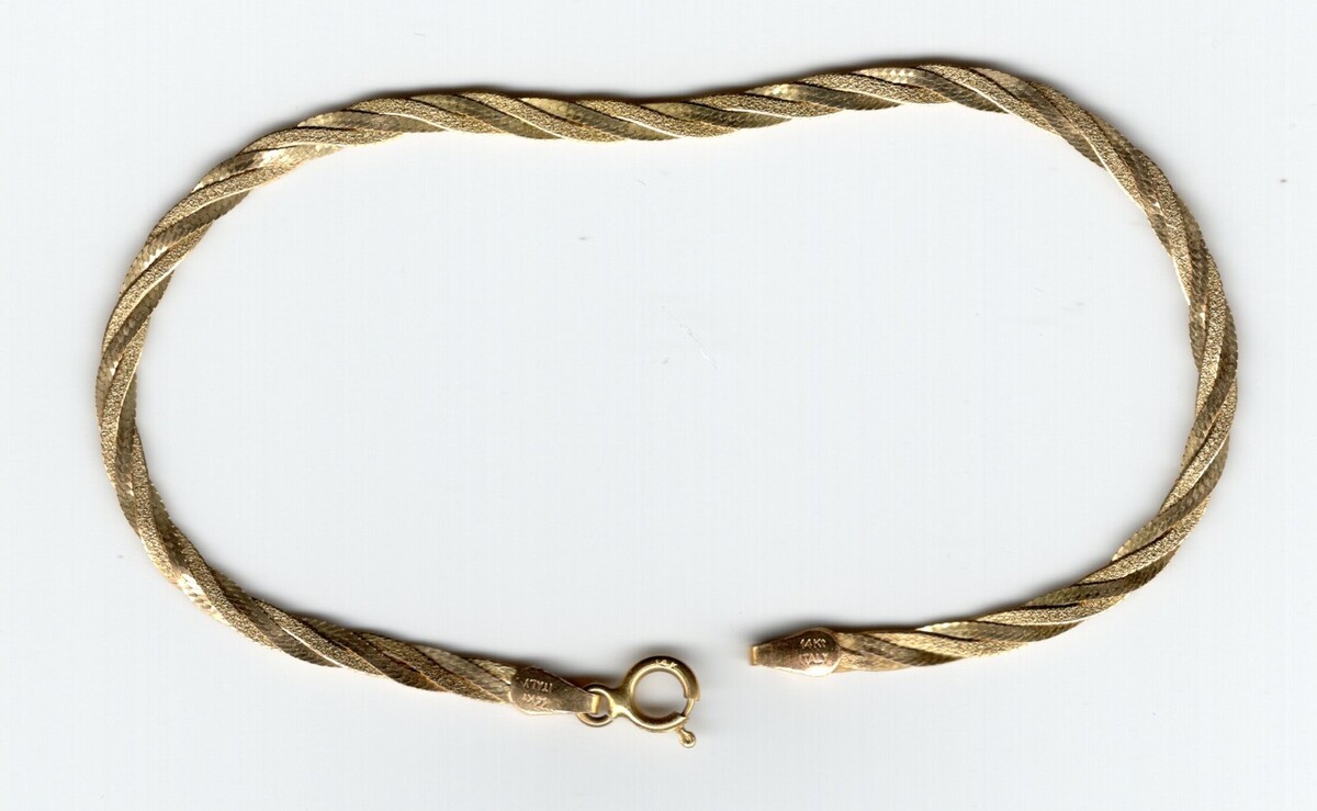 This is a 14K gold Italian Silmar twist chain bracelet. 7" x 4mm 1.9