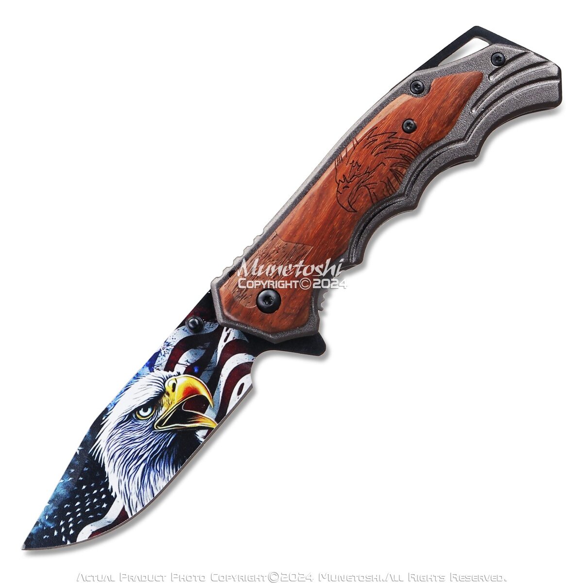 Munetoshi USA Eagle 3.25" Blade Wooden American Eagle Pocket Knife Clip Folding