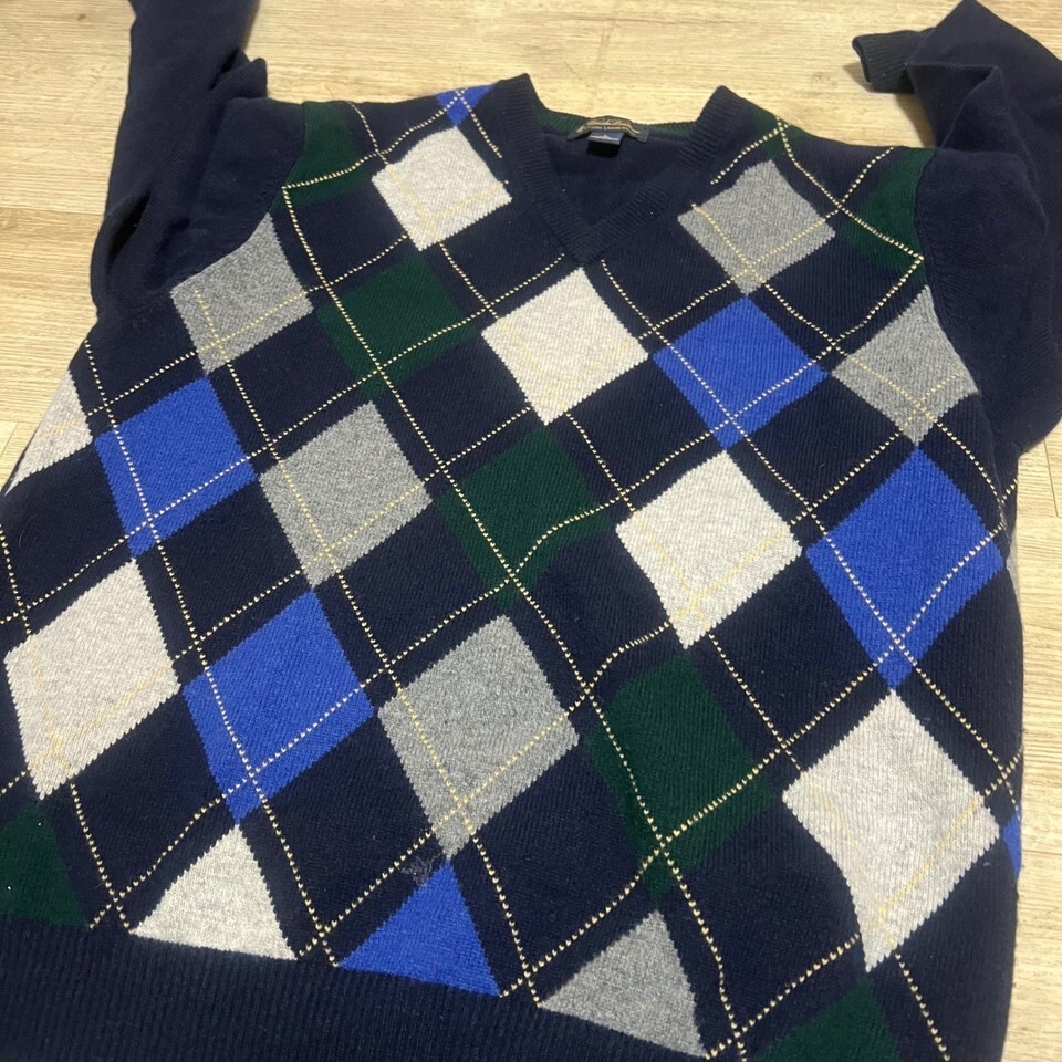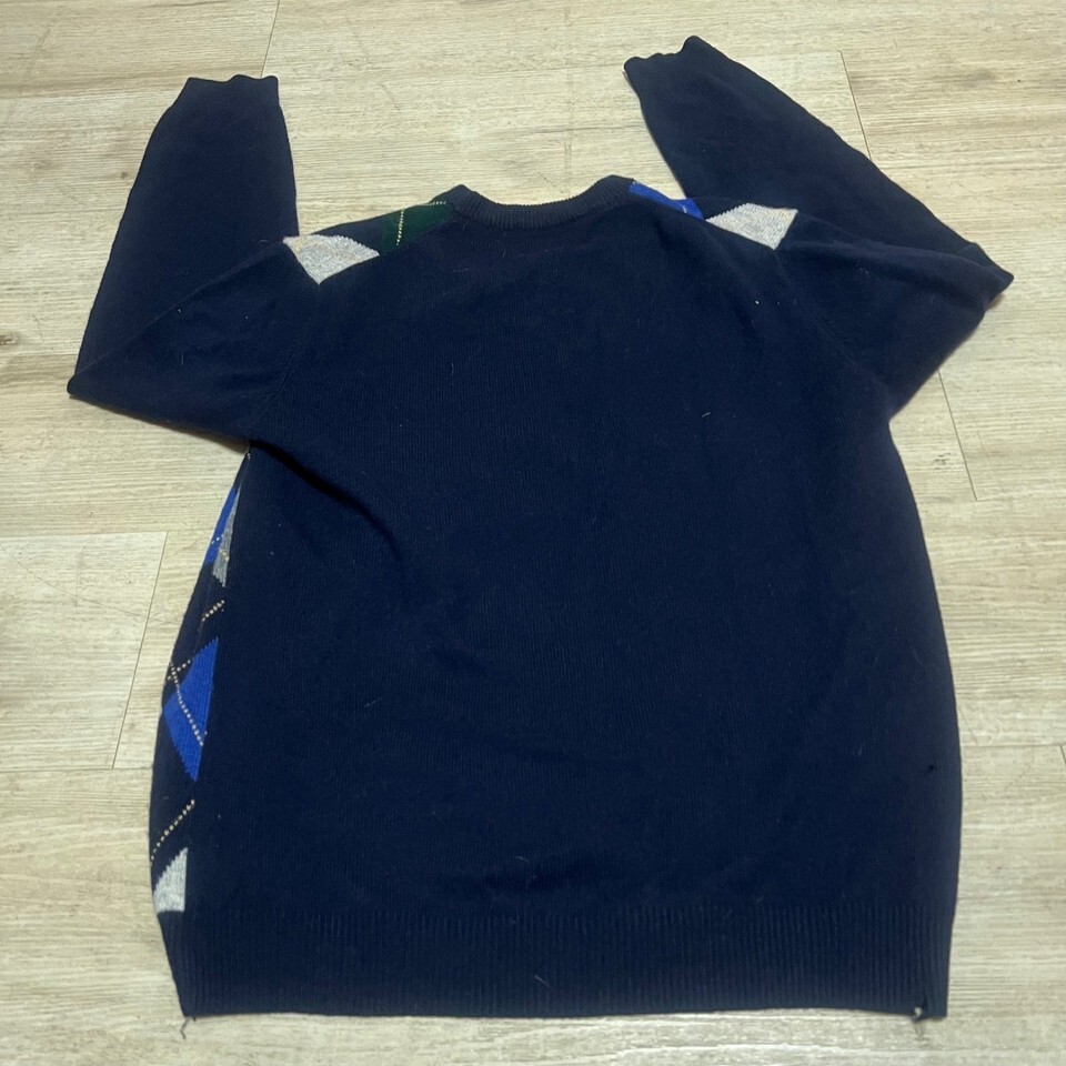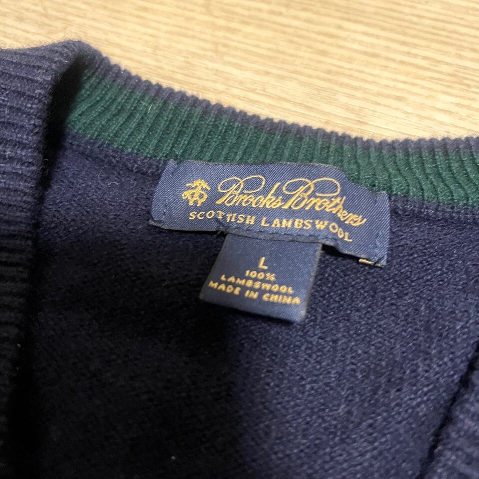Keywords: Brooks Brothers, Argyle Sweater, Lambswool Sweater, Mens Sweater, V Neck Sweater, Preppy Style, Classic Sweater, Navy Sweater, Blue Sweater, Green Sweater, Large Sweater, Men's Clothing, Knit Sweater
