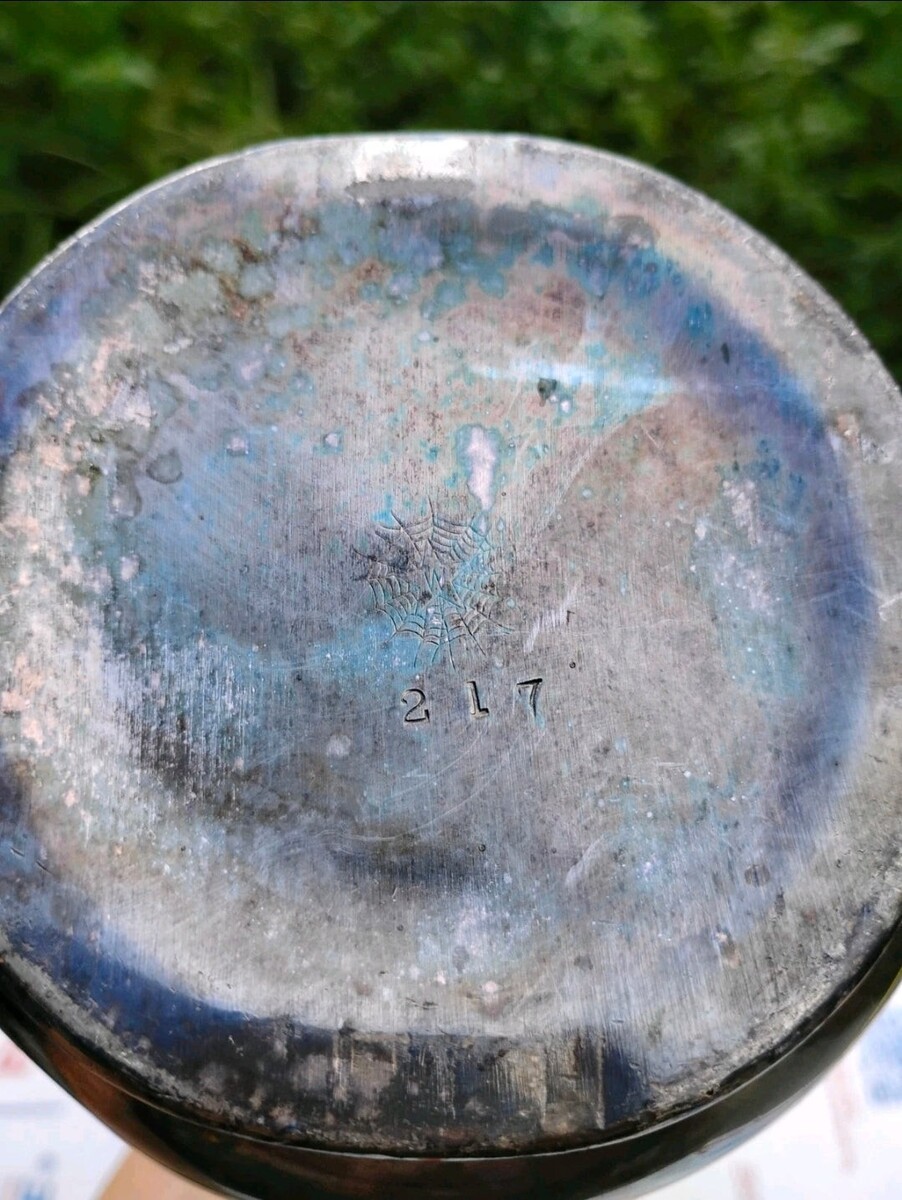 Pre-loved antique condition with visible age-appropriate tarnish and surface wear consistent with use and age. Interior shows typical vintage wear. No major dents or structural damage observed. Please review photos carefully for condition details.