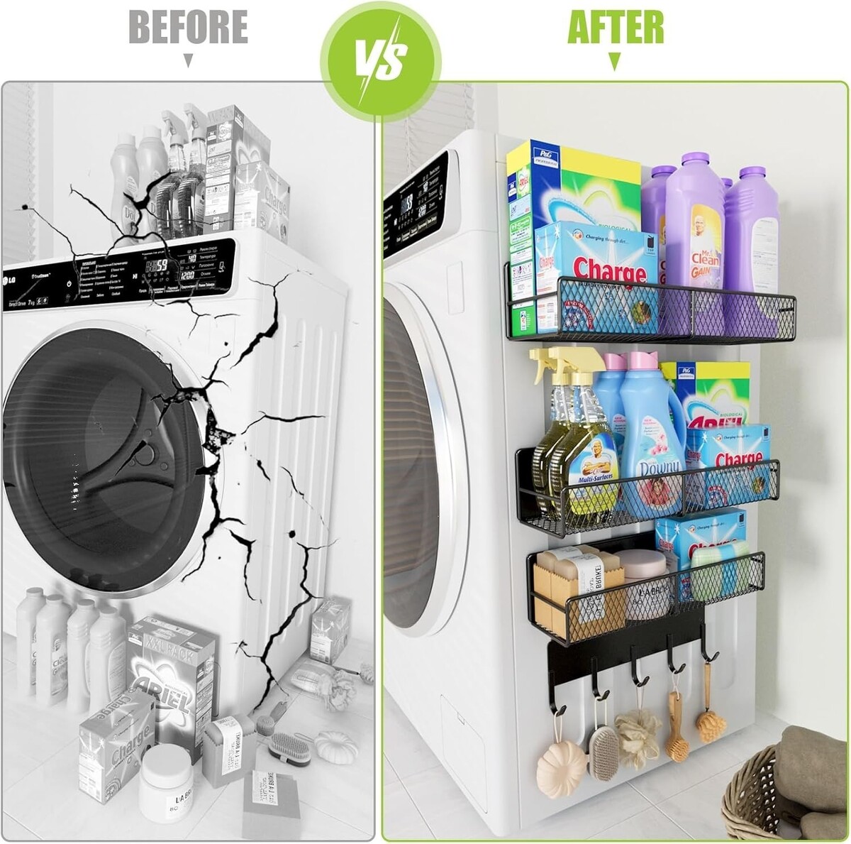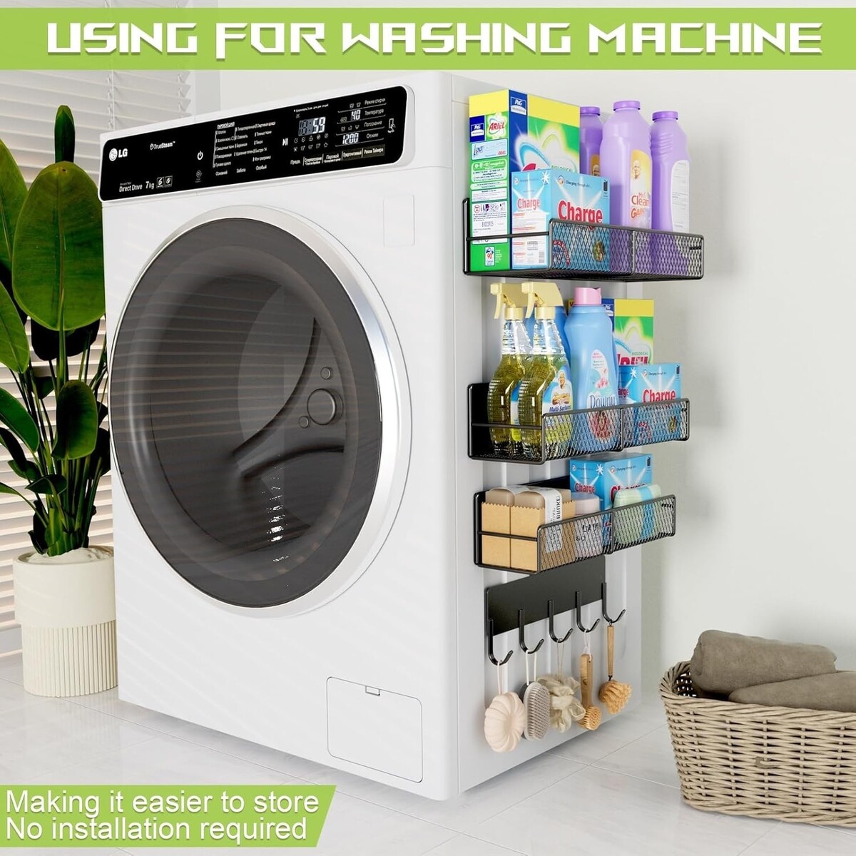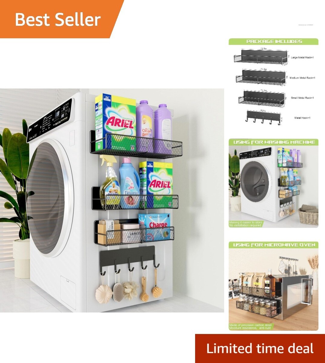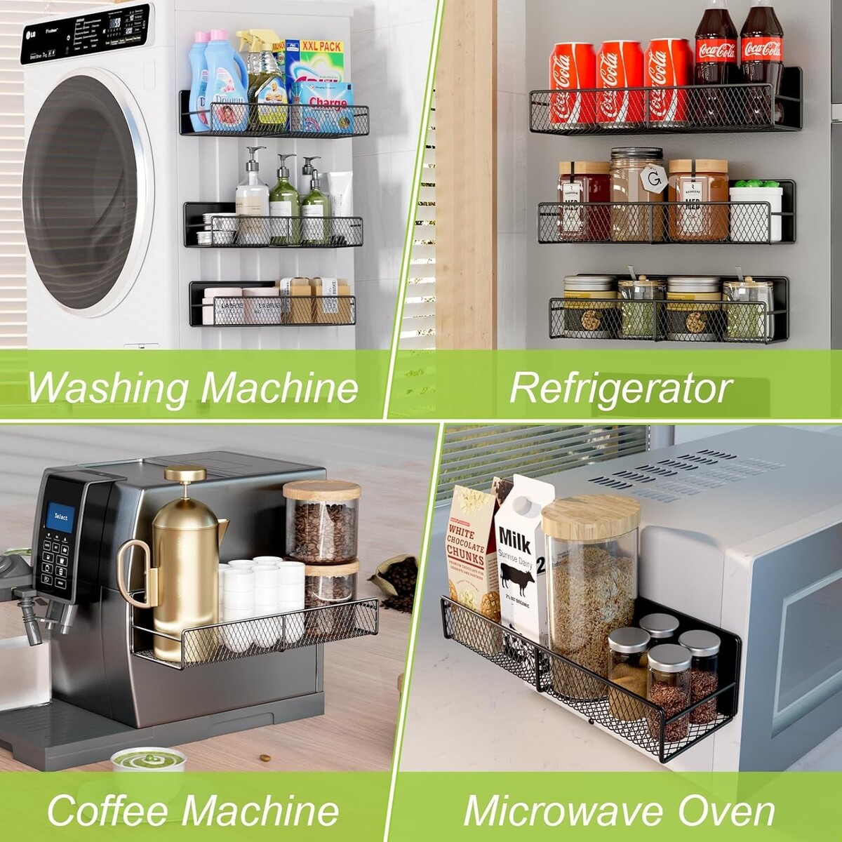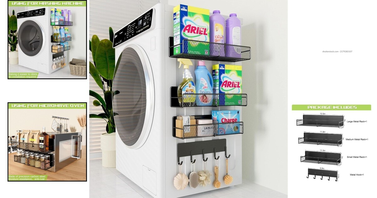 Space-Saving Magnetic Shelves for Washing Machines - 4 Pack, Heavy-Duty Hooks