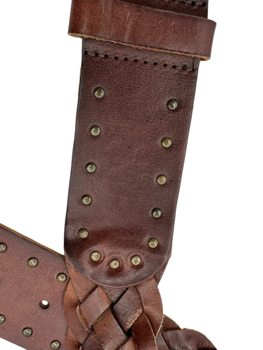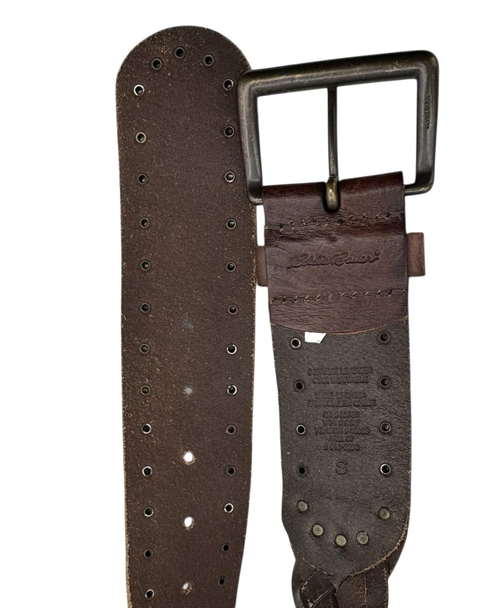 Vintage Eddie Bauer Belt Womens Small Brown Braided Leather Rivets Wide 32 34