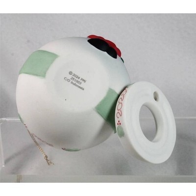 Measuring approximately 4.5"H, this ornament is meticulously sculpted of fine bisque porcelain and is expertly hand-painted.