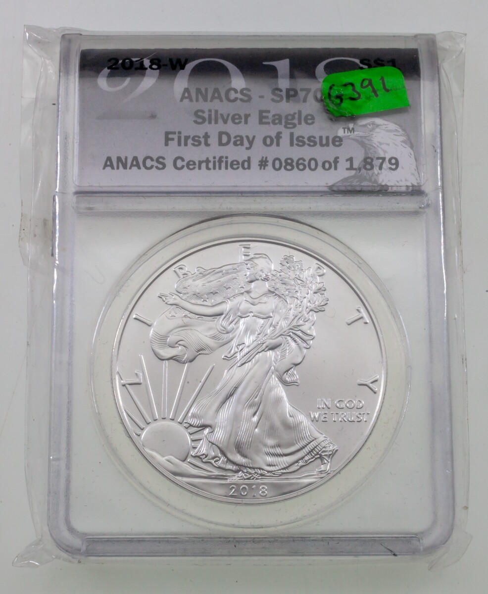 2018-W S$1 Burnished Silver American Eagle Graded by ANACS as SP70