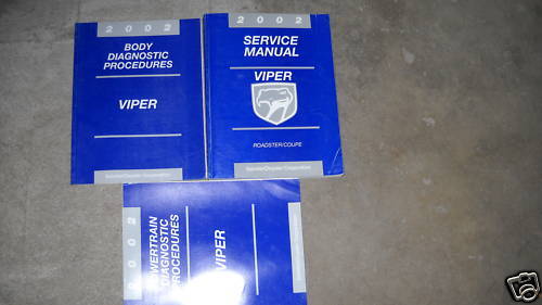 Manuale di servizio Dodge Viper Coupe e Roadster del 2002 e manuali delle procedure di diagnostica di gruppo propulsore/carrozzeria/telaio.