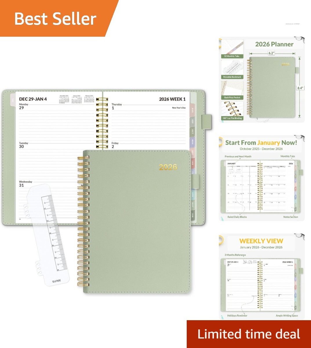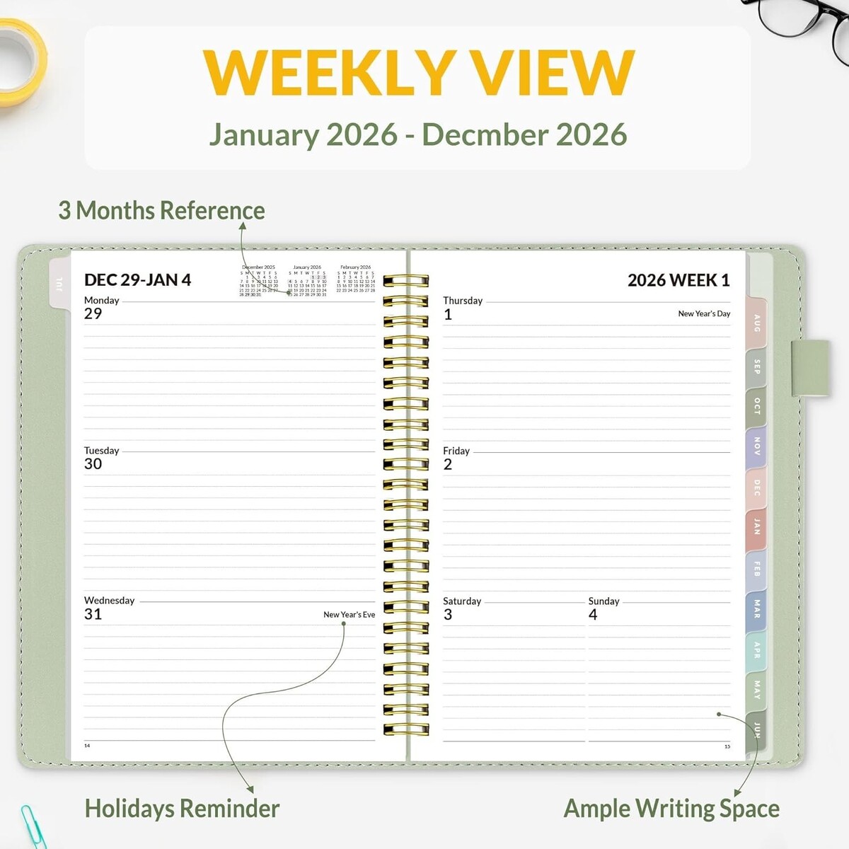 2026 Weekly & Monthly Planner with Thick Paper to Prevent Ink Bleed
