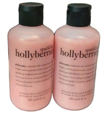 Philosophy Sparkling Hollyberries 6 oz Shampoo Shower Gel Bubble Bath X2.