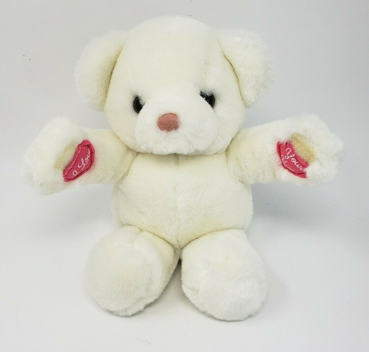 RUSS BERRIE TEDDY BEAR PINK HEART I LOVE YOUR HUGS VINTAGE STUFFED ANIMAL PLUSH
