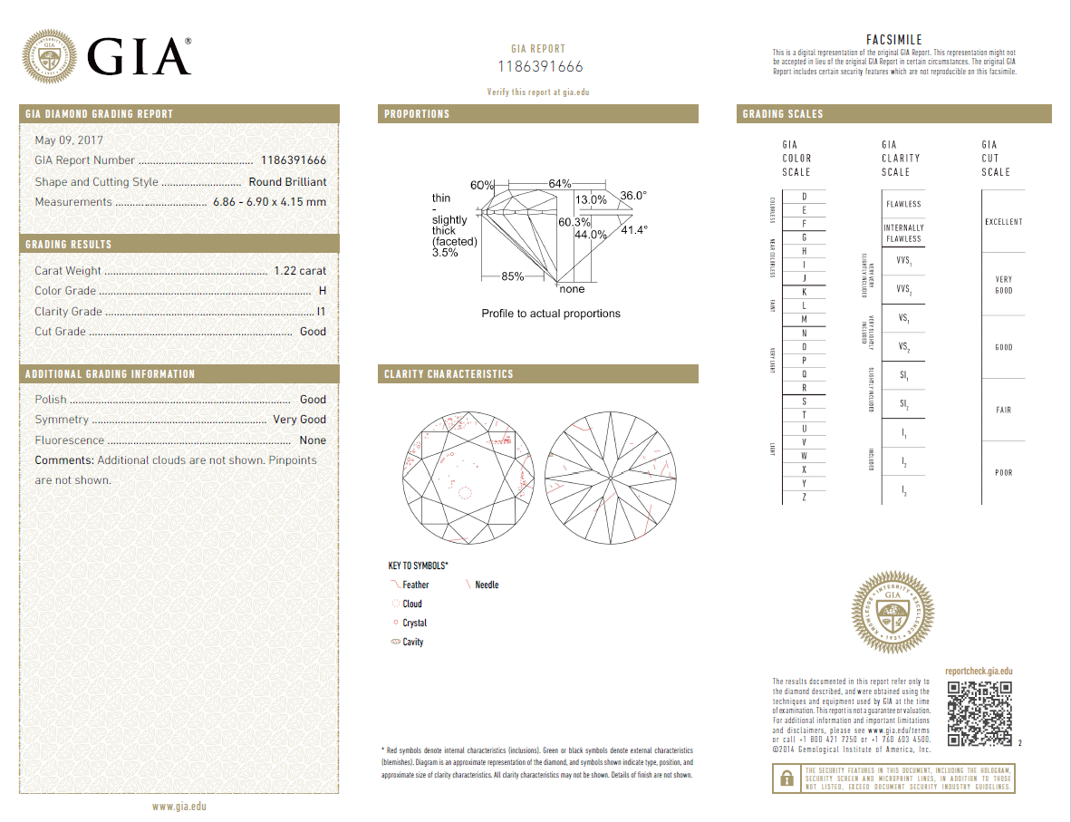 1.22 Carat Loose H / I1 Round Brilliant Cut and 50 similar items