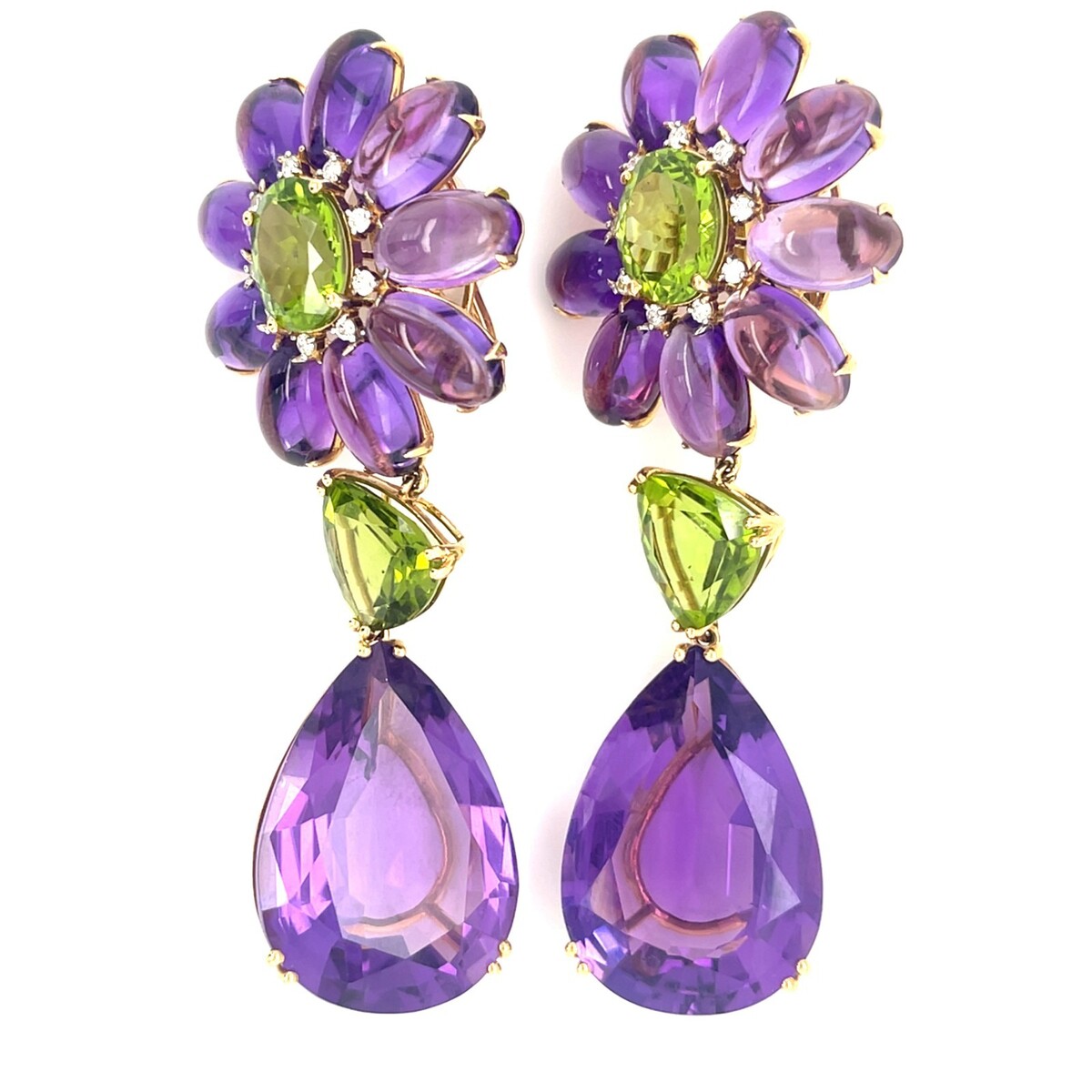 A Beautiful Pair of 18k Gold, Amethyst, Diamond, and Peridot Earrings