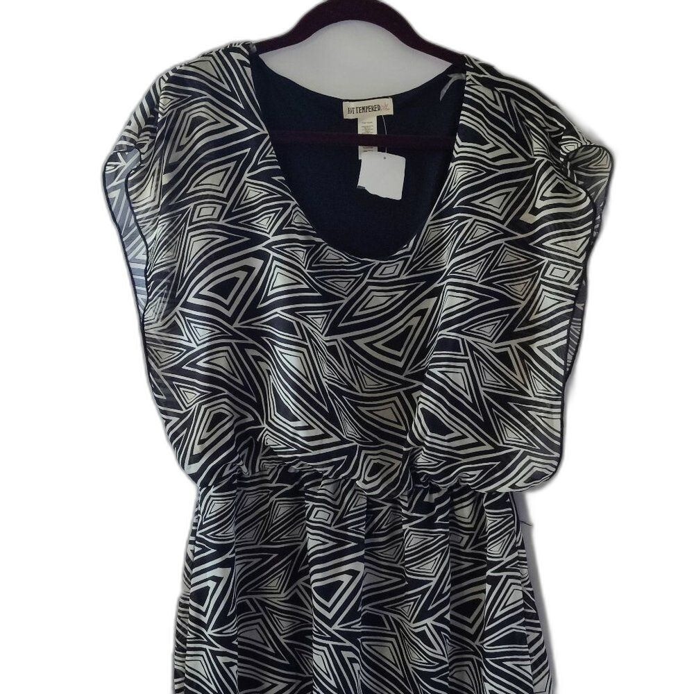 Hot Tempered Womens XL Black White Geometric Print Blouson Dress 3SC672AM NWT