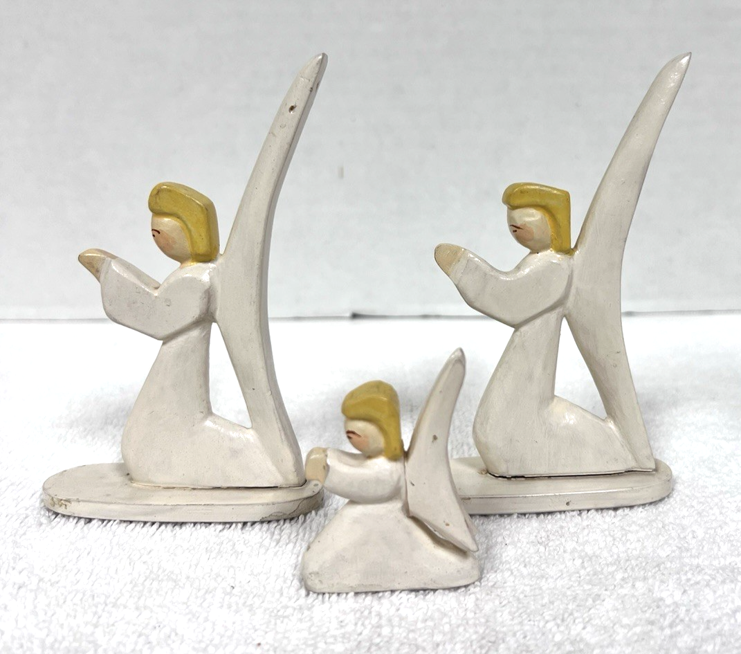 Vintage German Style 3 Handcrafted Wood Kneeling Praying Angels Toy Christmas. 2 of the angels are approx. 4 1/2" tall and one is 2 1/8". One angel has small nicks in paint see pictures.