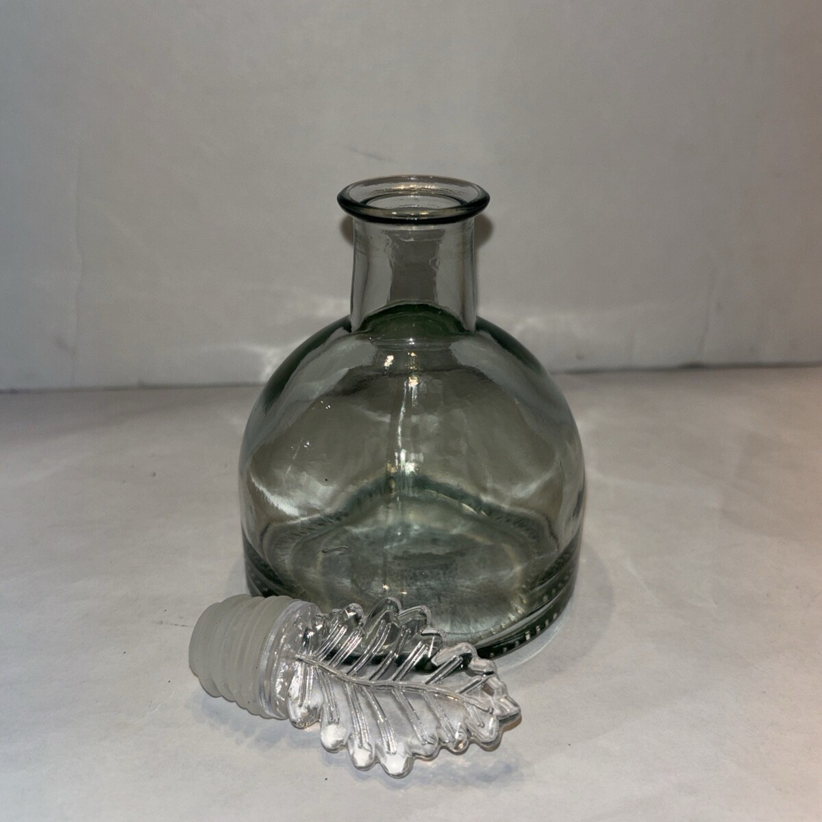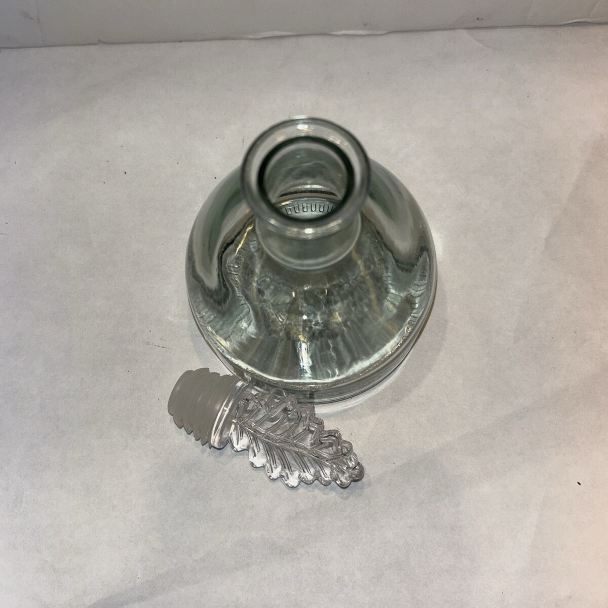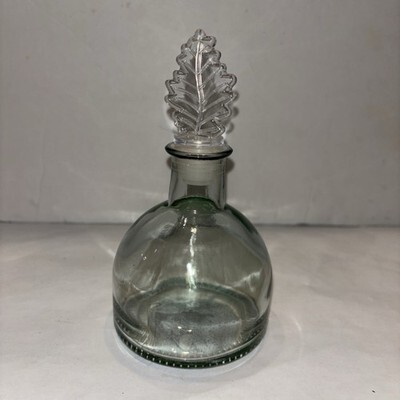 Beautiful Circular Clear Glass Perfume Bottle W/ Leaf (SHIPS IN 24 HRS)