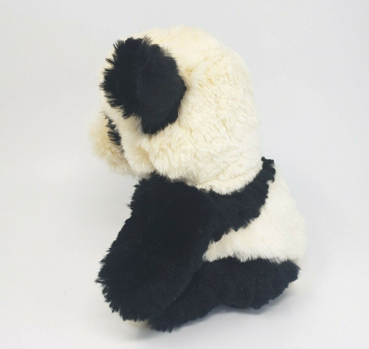9" VINTAGE REAL HAIR / FUR HANDMADE CREME & BLACK PANDA BEAR STUFFED ANIMAL TOY