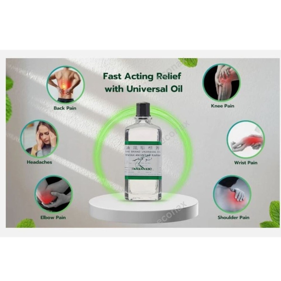 Axe Brand Medicated Universal Oil is a well-known medicated oil that has been trusted globally for over 80 years. It features a clear appearance, pleasant aroma, and a gentle formulation suitable for daily household use.