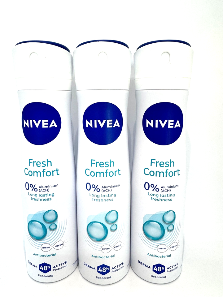 NIVEA deodorant spray FRESH COMFORT 0% Aluminum-3 x 150ml FREE SHIP