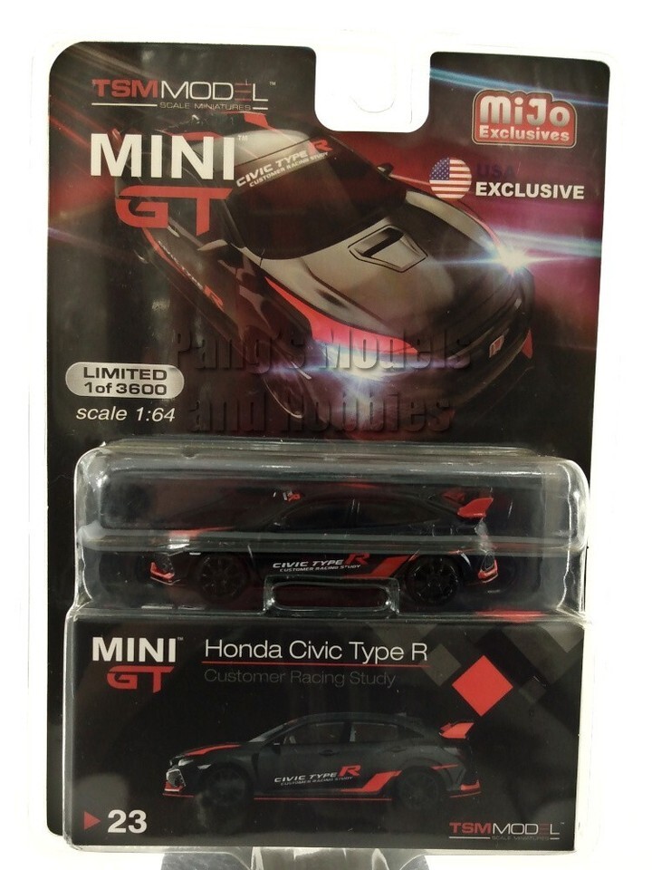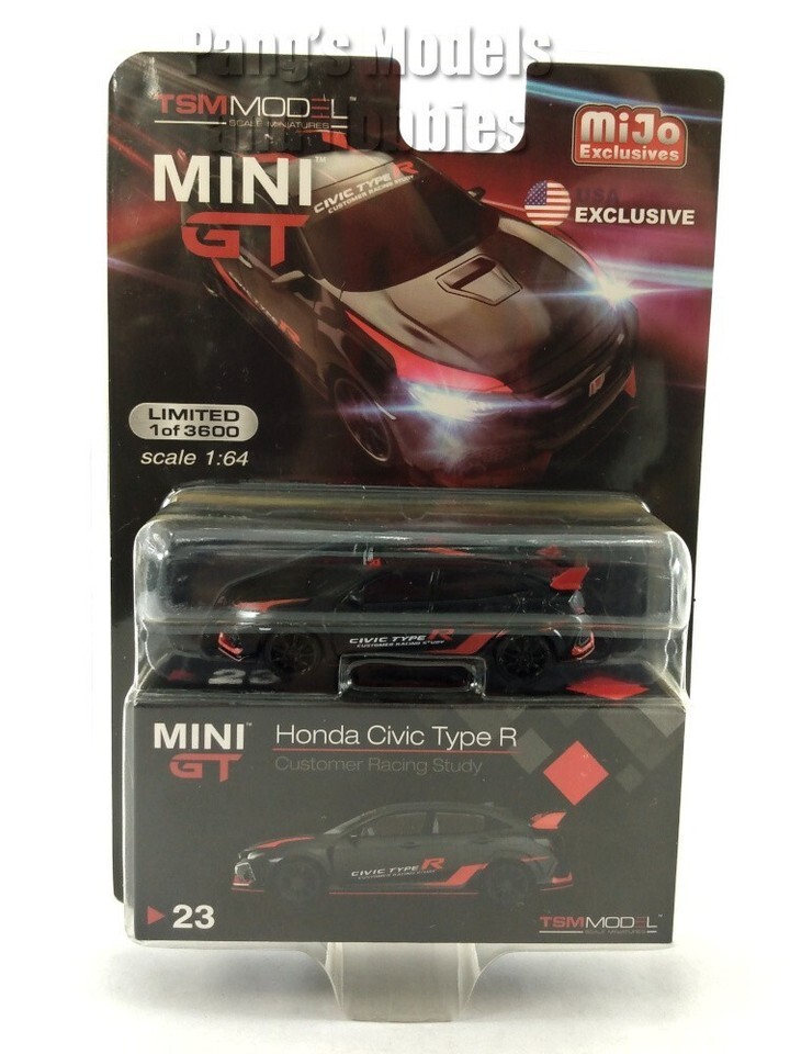 1:64 Scale Metal Diecast ? 2017 Honda Civic Type R FK8 Black Chase Customer Racing Study - Length: 2.75", Width: 1.25?