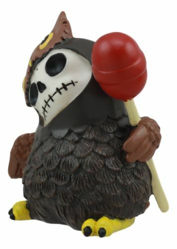 Ebros Furrybones Hootie The Great Horned Owl With Red Lollipop Skeleton Figurine 3"H