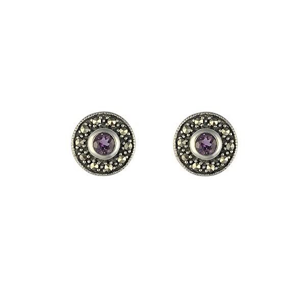 Esse Marcasite Sterling Silver Amethyst and Marcasite Petite Stud Earrings of 0.