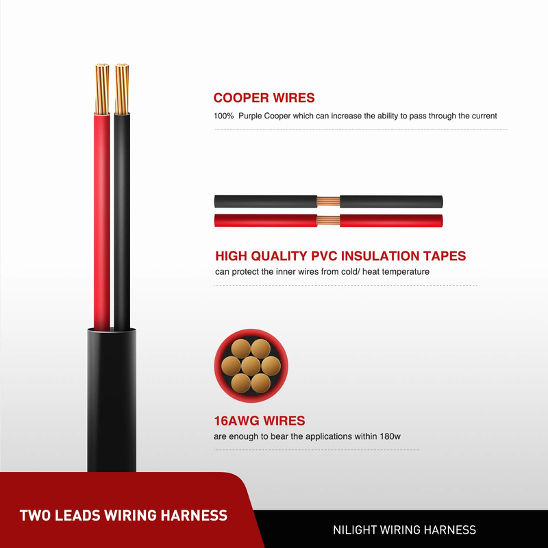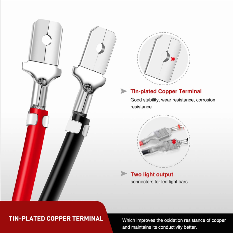 10ft Extension Wires: 16AWG wiring harness extension cable. It?s enough to extend your wiring harness where you want to install lighting location to help you mount LED work lights in truck or cabin easily..Fit Type: Universal