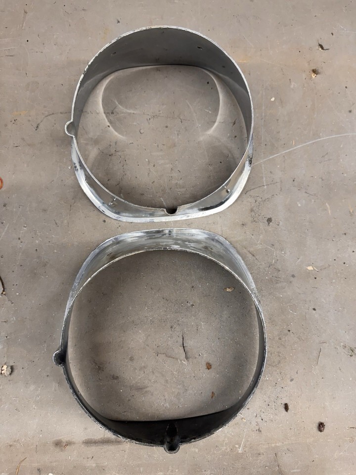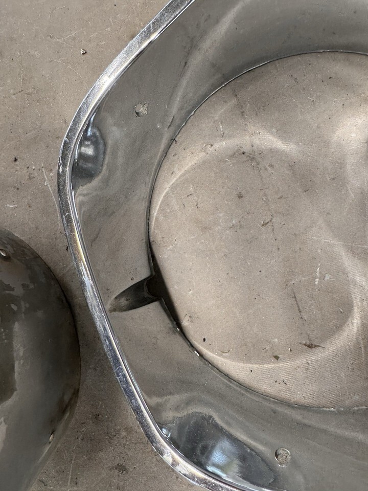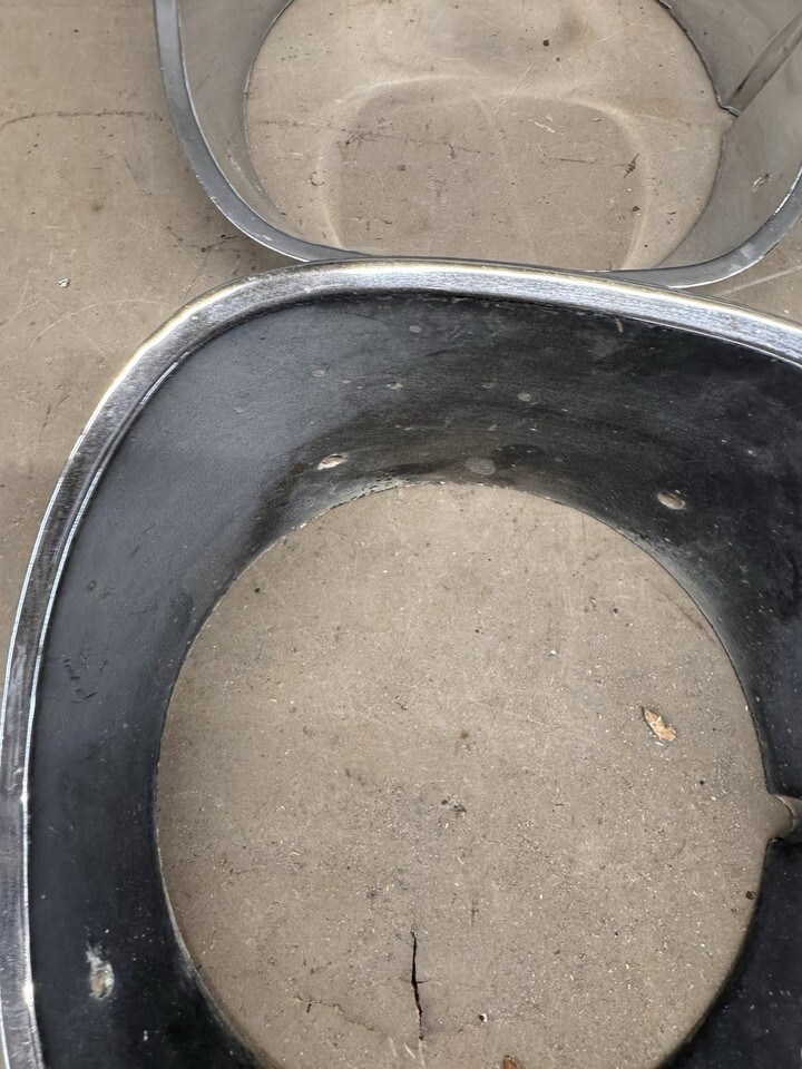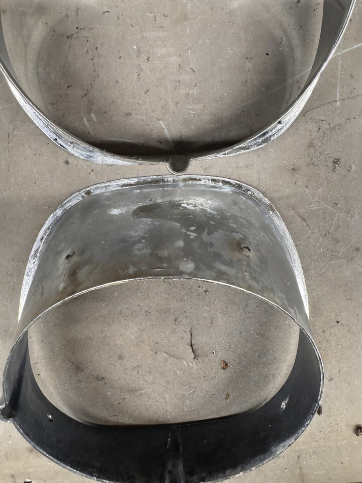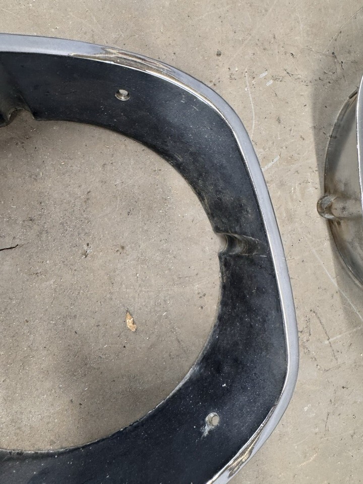 Driver quality original factory headlight fender bezel trim moldings for 74-75 Chevy Vega